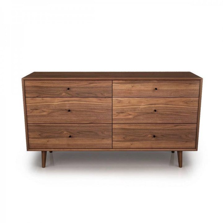 The Herman Dresser - 6 Drawer by Huppé embodies modern design and practical functionality. Expertly crafted in Canada, this dresser is crafted from high-quality wood, showcasing its natural beauty and robustness. The Herman Dresser's design, defined by its clean lines and modern finish, exudes a sense of refined minimalism, making it a versatile piece that effortlessly complements any bedroom decor. The dresser provides generous storage with six spacious drawers, each equipped with a smooth-gliding mechanism for seamless operation. The Herman Dresser - 6 Drawer by Huppé is not just a piece of furniture; it's a statement of style, functionality, and quality that enhances the aesthetic appeal of your space.