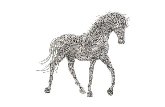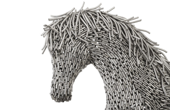 The Walking Horse Pipe Sculpture is a breathtaking creation by the award-winning Indonesian sculptor Timbul Raharjo. This unique piece, meticulously crafted from highly polished stainless-steel pipes, embodies the power and grace of a walking horse. Each pipe is individually placed and welded to form a striking, complex silhouette, making it a true masterpiece of modern organic design. The combination of contemporary craftsmanship and natural movement makes this sculpture a stunning focal point for both indoor and outdoor spaces. Also available in rearing and walking profiles, this sculpture reflects the Phillips Collection’s ethos of blending natural forms with modern artistry.