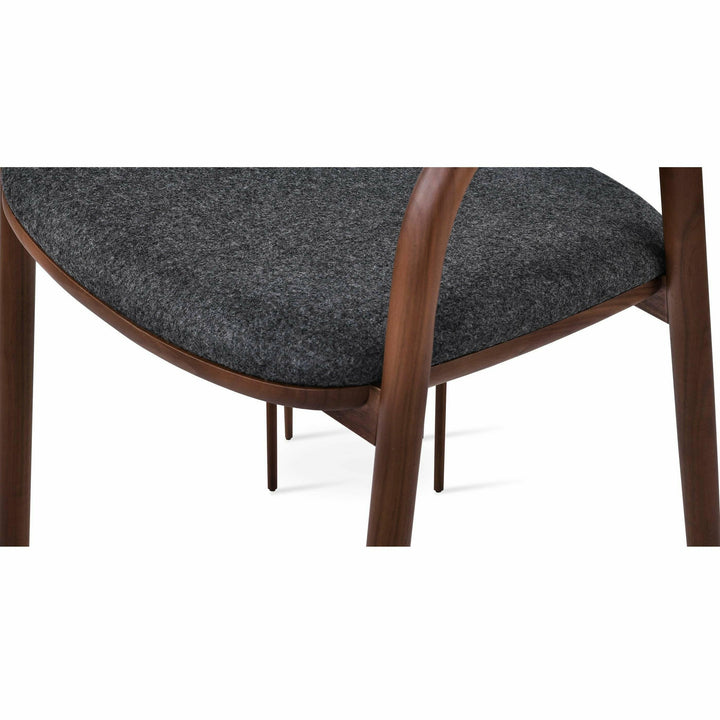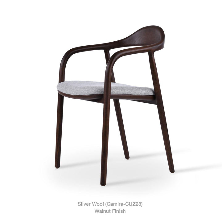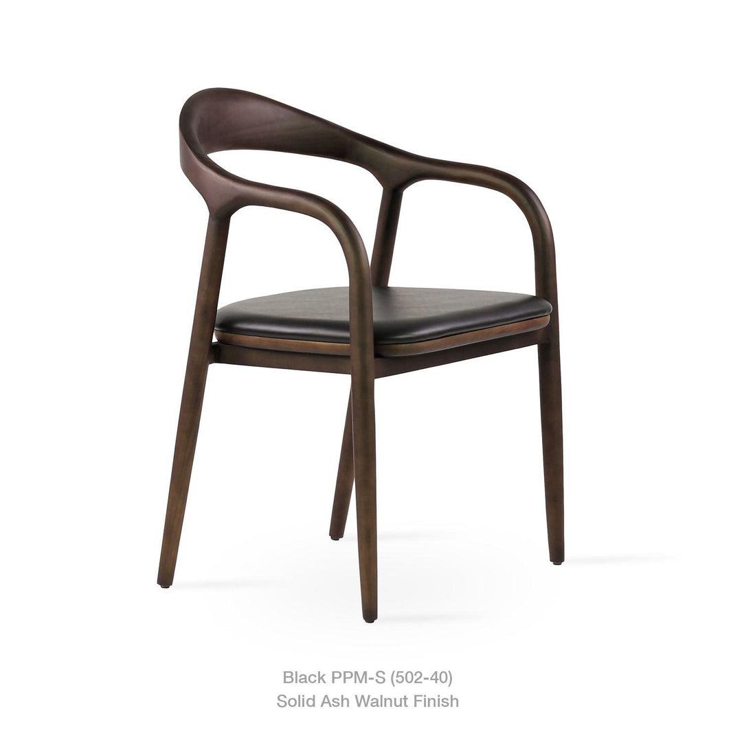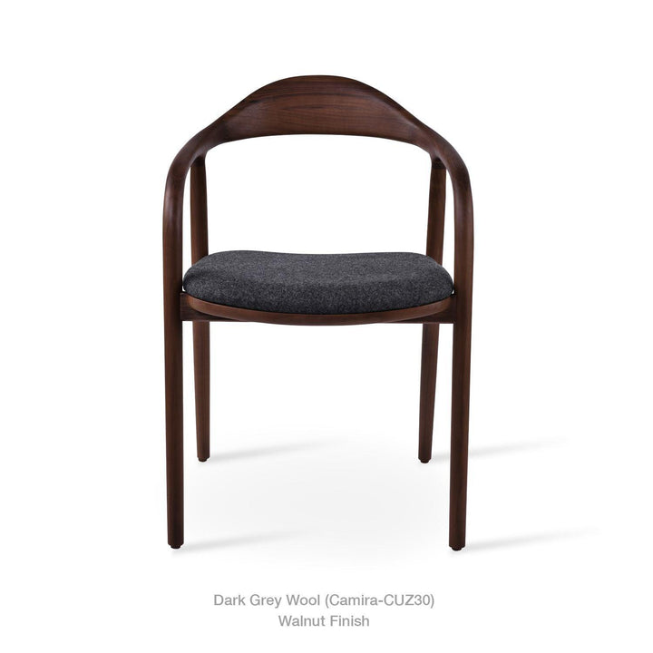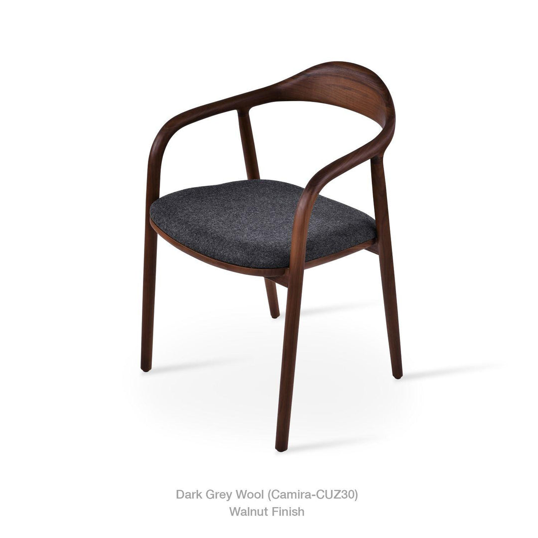 The Infinity Arm is an industrial-style chair available with an upholstered seat. The legs and the frame are finished with wood. The Industrial Modern team designs Infinity Arm, which is suitable for residential and commercial use.