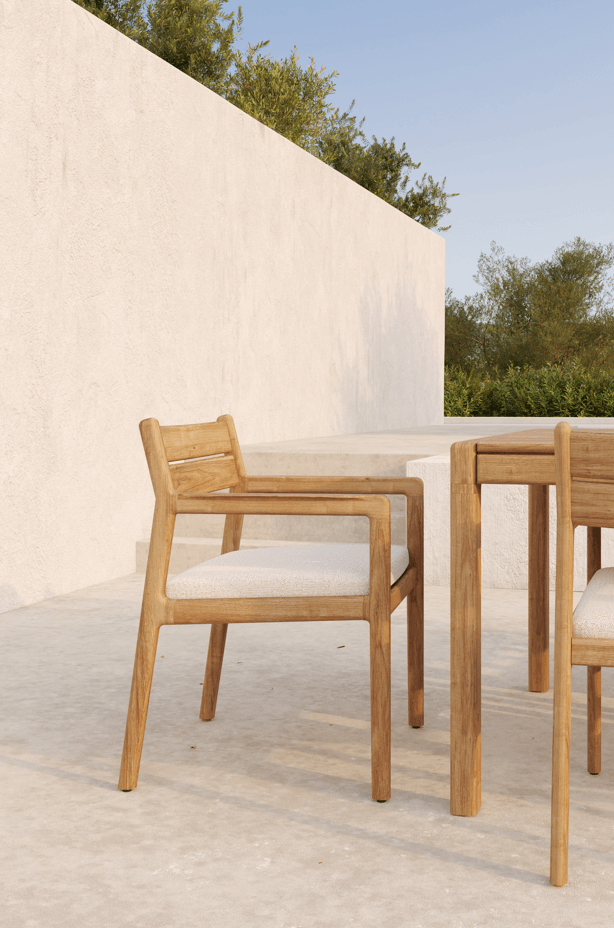 The Jack Outdoor Dining Table from Ethnicraft is the epitome of outdoor luxury. Its alluring shapes and curves are not just a design statement but a testament to meticulous craftsmanship. This table sets the scene for an unforgettable outdoor dining experience, seamlessly combining elevated comfort and elegance. Designed with functionality and beauty in mind, it's perfectly complemented by matching chairs for a cohesive and statement-making outdoor dining set.