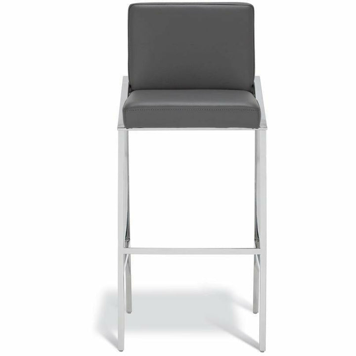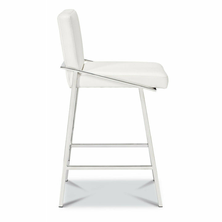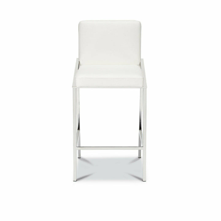 Defined by its clean-cut design, this sleek counter stool plays beautifully against a contemporary or neutral background. Standing on a sturdy stainless steel frame, it effortlessly blends minimalism and sophistication.