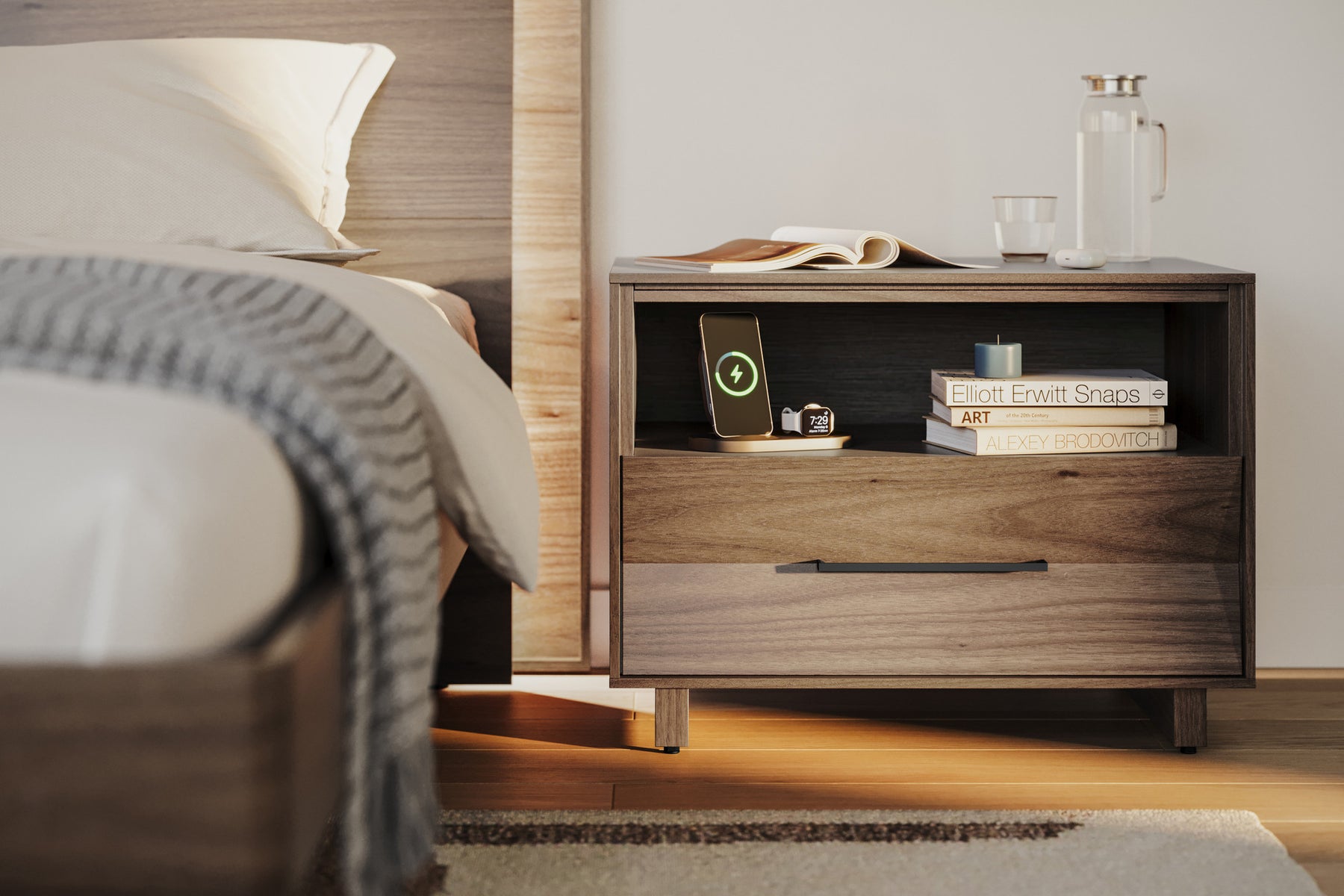 ⭐⭐⭐⭐⭐ "This nightstand is exactly what we needed—clean lines, plenty of storage, and charging ports built in. Love the hidden top tray!" – Claire T.