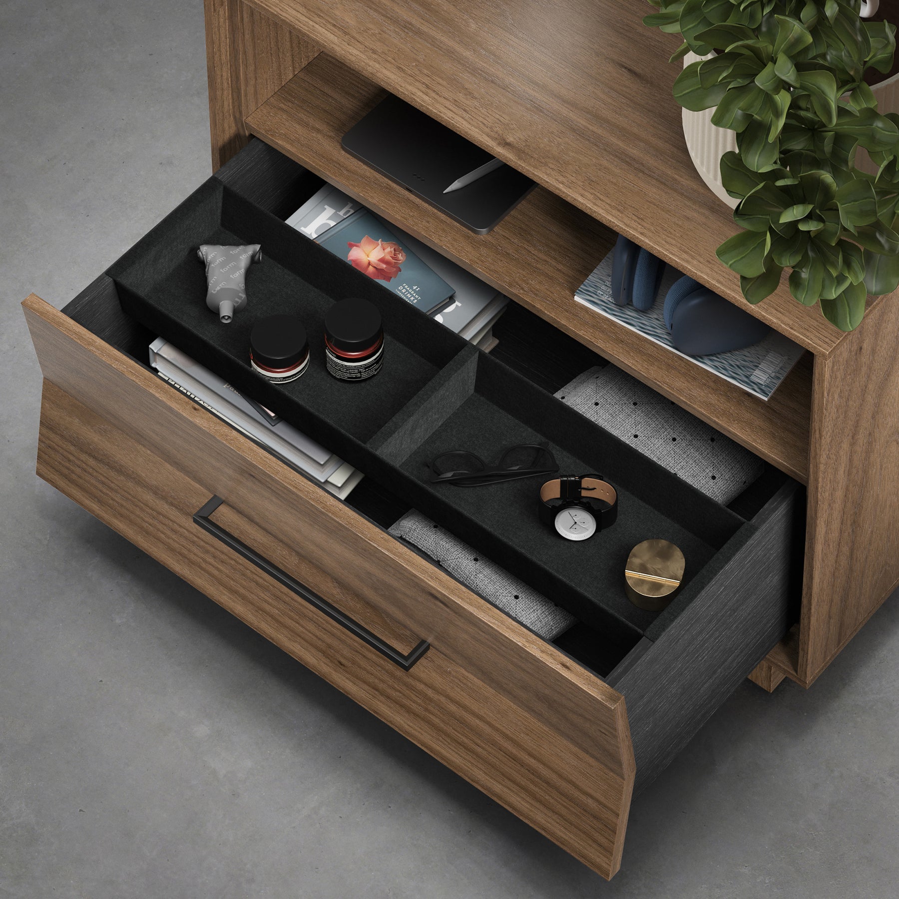 With a sliding top panel, removable velvet-lined tray, and built-in power center featuring AC, USB-A, and USB-C outlets, the Kava nightstand makes bedtime rituals beautifully efficient. Soft-close drawers and hidden cable management ensure your space stays as sleek as it is smart.
