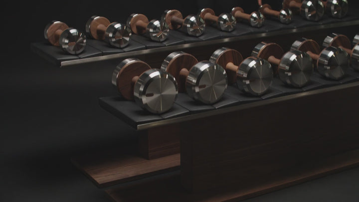 The LESNA™ Barbell Set from Pent Fitness redefines opulence in fitness. Handcrafted to perfection, this barbell set merges impeccable design with unparalleled performance. Each weight is meticulously crafted from the most luxurious materials, ensuring each lift feels just as remarkable as the set looks. The stand, embodying simplicity and sophistication, cradles the barbell weights seamlessly. This set isn't merely a piece of fitness equipment but an emblem of luxury in every workout setting.