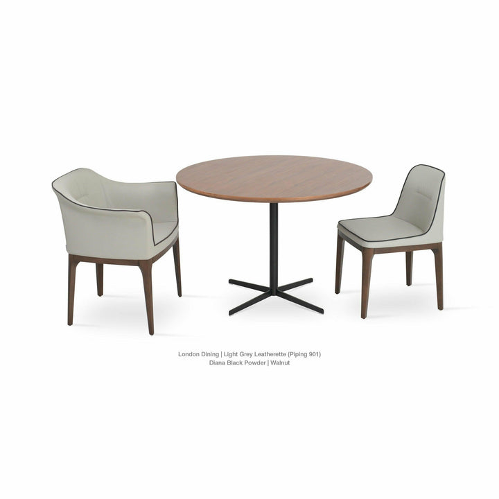 The London Arm Wood chair is a stylish armchair with a comfortable upholstered seat and backrest with a steel tube frame structure wrapped by regenerated leather. This armchair is the perfect solution for waiting or reception areas. The chair has a slightly padded seat upholstered with regenerated leather only. The armchair is suitable for both residential and commercial use.