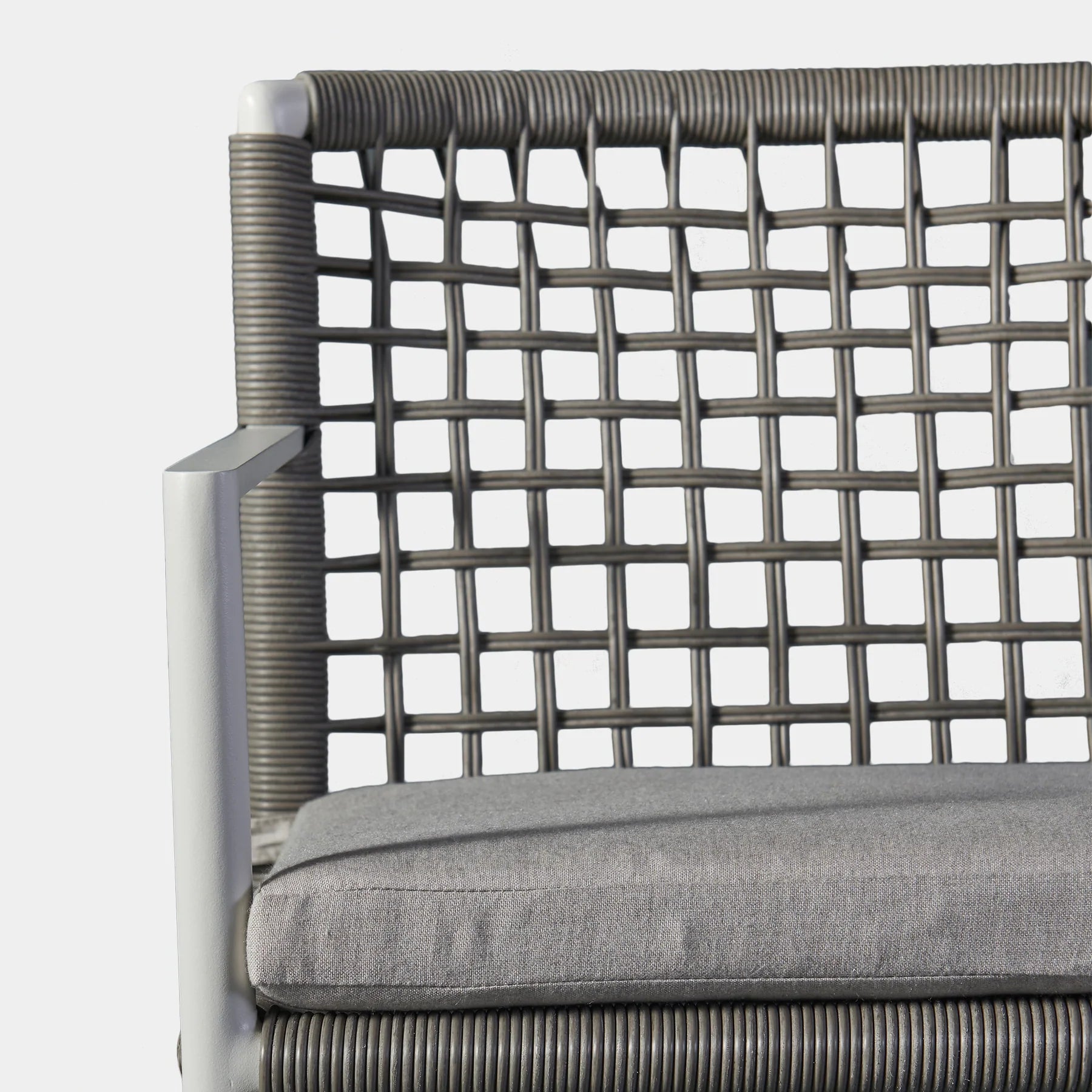 The Loop collection blends clean, angled lines with the grid of the wicker to create a namesake looping design. The Loop Counter Stool is the perfect match for your outdoor counter space — enjoy a plush cushion and a gently curved back, part of a powder-coated extruded aluminum frame. The seat and back feature an open weave all–weather wicker that balances the contemporary with the modern, with a seat cushion featuring velcro straps for a firm hold. Impeccably crafted and quick drying, this versatile piece completes any outdoor space.