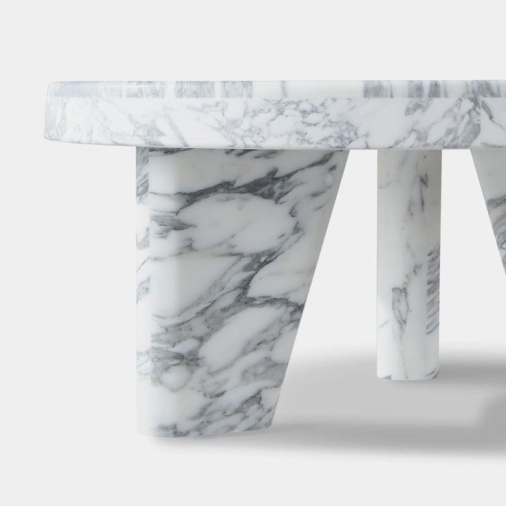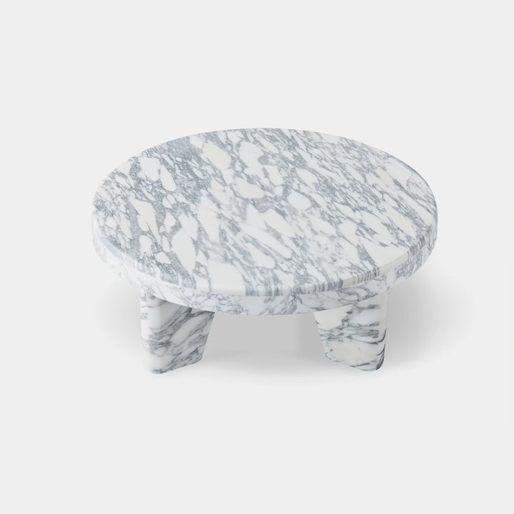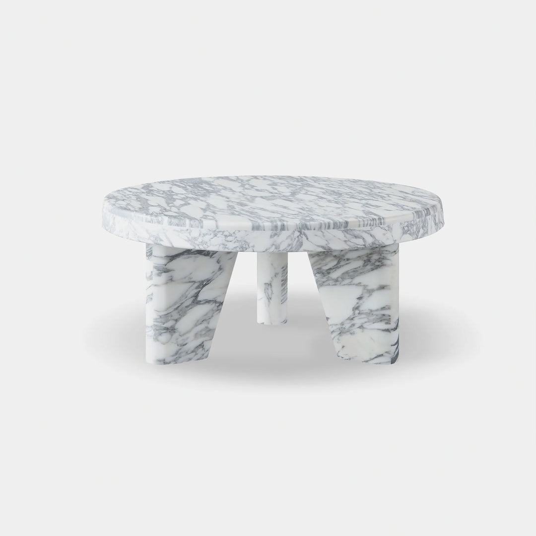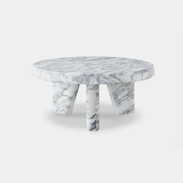 Our indoor/outdoor Lucca collection features dynamic angles, organic curves, and unique tripod construction. The Lucca Round Coffee Table 33" is a conversation piece — handcrafted from Italian Arabescato marble or European natural travertine and supported by an aluminum substructure to reduce weight. Stone sealant preserves its unique character and makes it a versatile piece for indoor and outdoor use, but wherever you place it, it will be a statement. Available in two sizes of varying heights and diameters, each can stand alone or be grouped for the perfect layering.