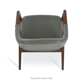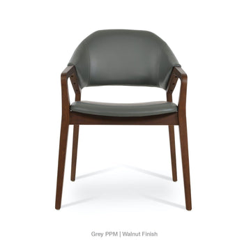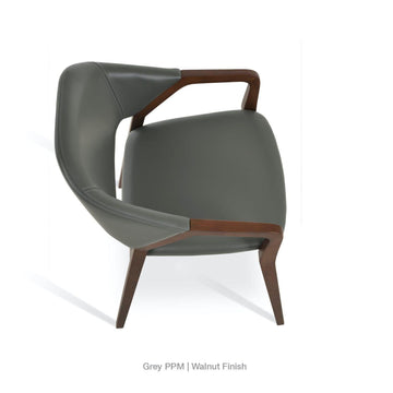 The Luna Armchair is a contemporary chair with an upholstered back and seat. The legs are finished in wood. The Industrial Modern team designs Luna Armchair and it's suitable for both residential and commercial use.