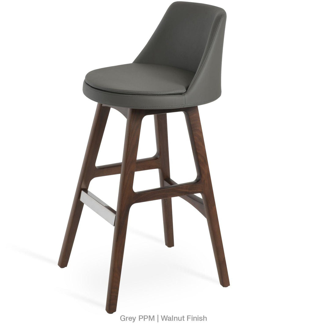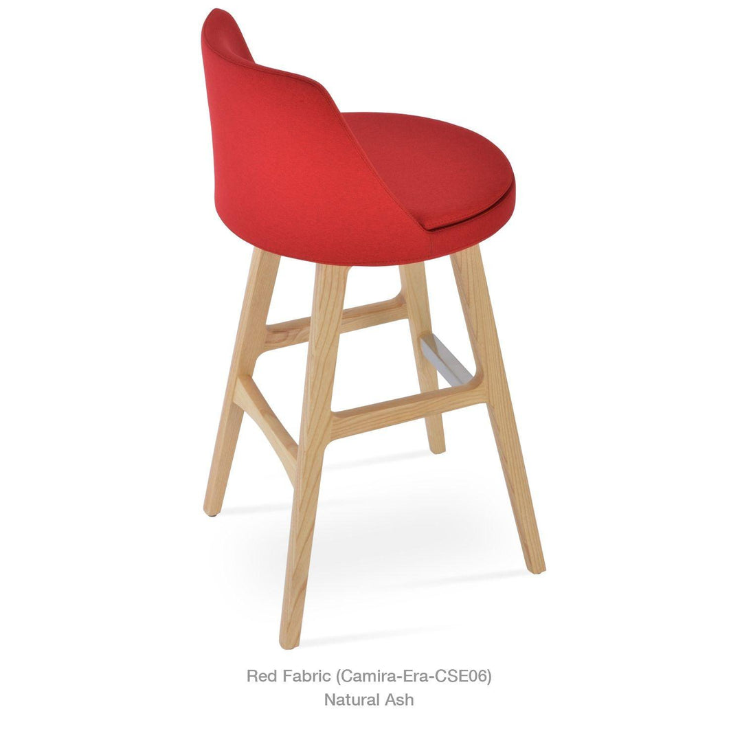 Martini PR Wood is a unique counter and bar stool with a comfortable upholstered seat and backrest on a wood base. The base finish is offered in beech wood walnut & wenge paint and original walnut and natural ash wood. The seat has a steel structure with “S” shape springs for extra flexibility and strength. This steel frame is molded by injecting polyurethane foam. Martini's seat is upholstered with a removable velcro slip cover. The stool is especially recommended for commercial use with its durability. Upon request, stainless steel footrest will be used especially for contract projects.