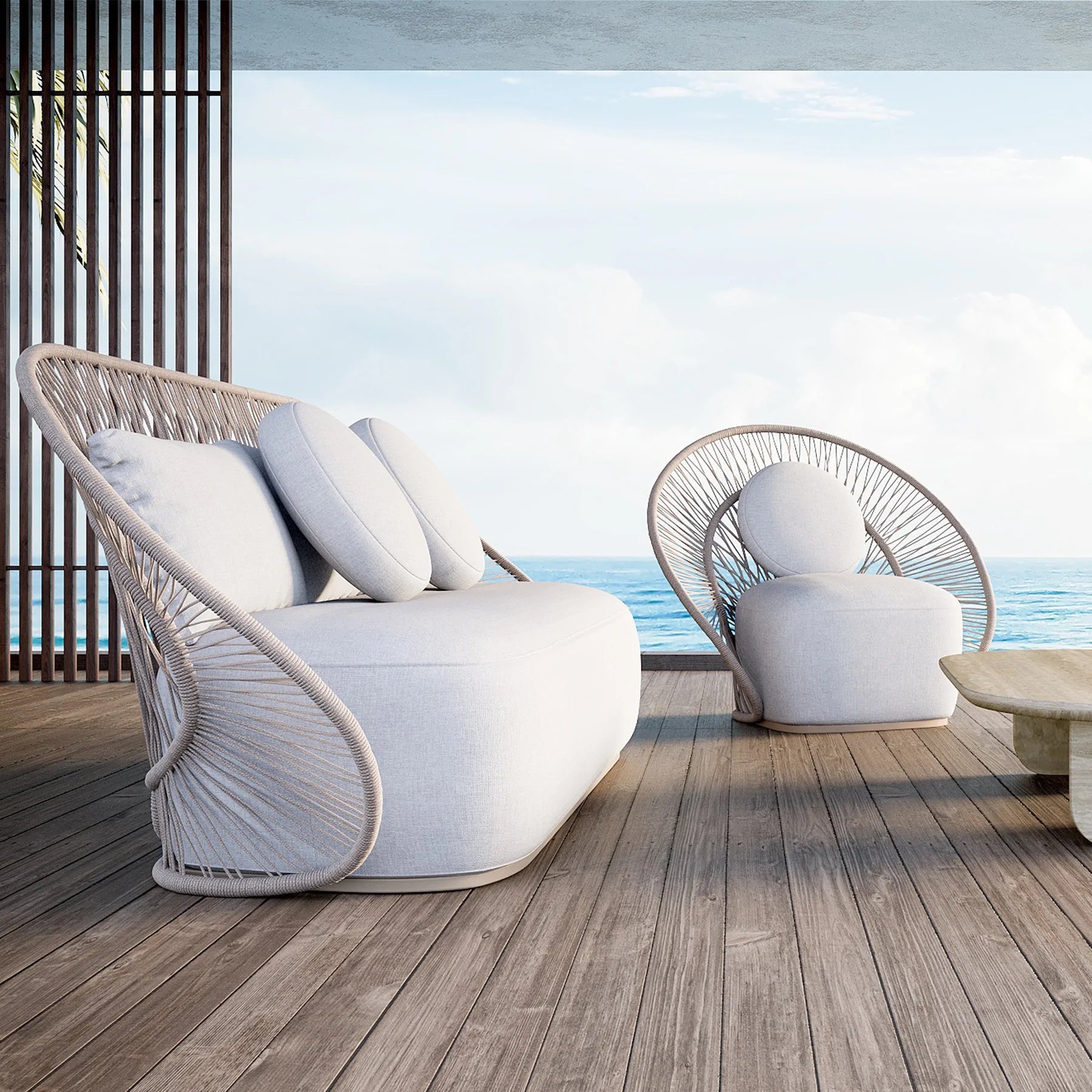 • Featuring a signature radial rope pattern that creates a sophisticated rhythm