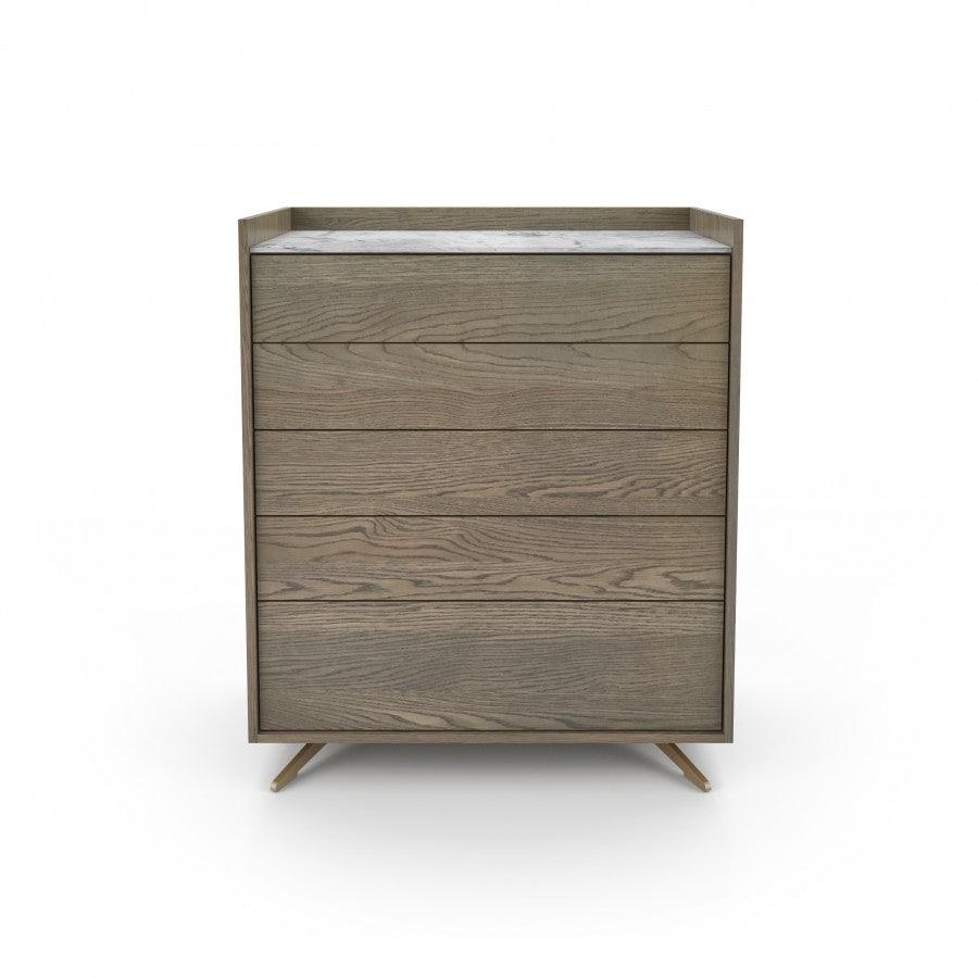 The Memento 5 Drawer Chest by Huppé combines exceptional design and functionality to elevate any bedroom. Crafted with high-quality white oak veneer, this chest is robust and stylish, featuring five spacious drawers that provide substantial storage for clothing, bedding, and other essentials. The sleek silhouette is supported by lacquered steel legs, adding a contemporary flair to the piece. Available in various finishes, the Memento Chest can be tailored to match your room's decor seamlessly.
