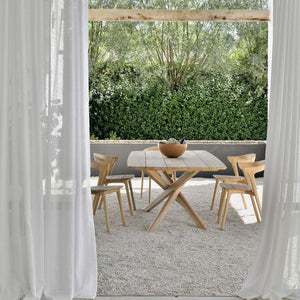 Alain van Havre's Mikado Outdoor Dining Table for Ethnicraft is a true masterpiece, bringing a sculptural elegance to any outdoor setting. This table is celebrated for its complex, yet harmonious, design where the legs interlock in an intricate puzzle, promising both stability and a visually striking appearance. Crafted with a grooved solid teak top, it's designed to enhance outdoor living, making it both a pleasure and a unique experience.