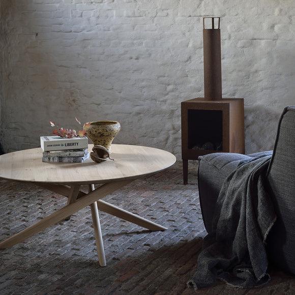 The Mikado Round Coffee Table, designed by Alain van Havre, is a testament to the beauty of balance and precise craftsmanship. This piece reimagines the traditional Mikado design into a round format, offering a more intimate and inviting interaction. The intricately arranged legs form a stable base yet create an almost optical illusion, making this table not just a piece of furniture but a conversation starter. Crafted with Ethnicraft's signature commitment to quality, the round coffee table is both a functional item and a standout piece of modern design.