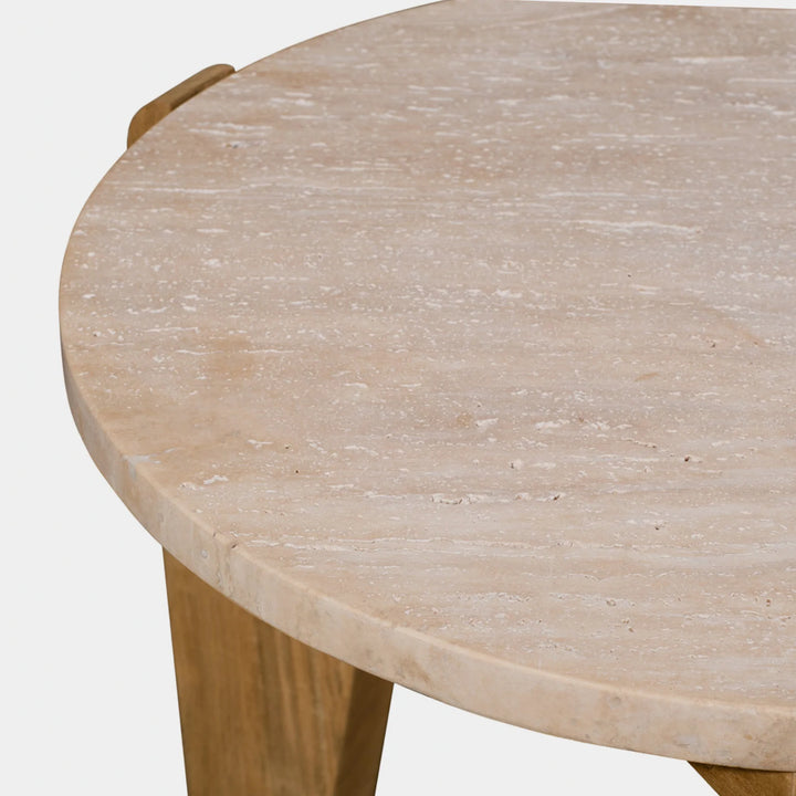 Collaborating with decorated interior designer Martyn Lawrence Bullard, our MLB collection balances modern proportions with a striking juxtaposition of outdoor materials. The MLB Round Dining Table was designed as the perfect outdoor table for up to four — featuring a handcrafted frame of solid Indonesian teak with four angled teak legs supporting a beautiful travertine top. A truly versatile statement piece, layer this design into many aesthetics or leave it as a stand-alone to let it shine.