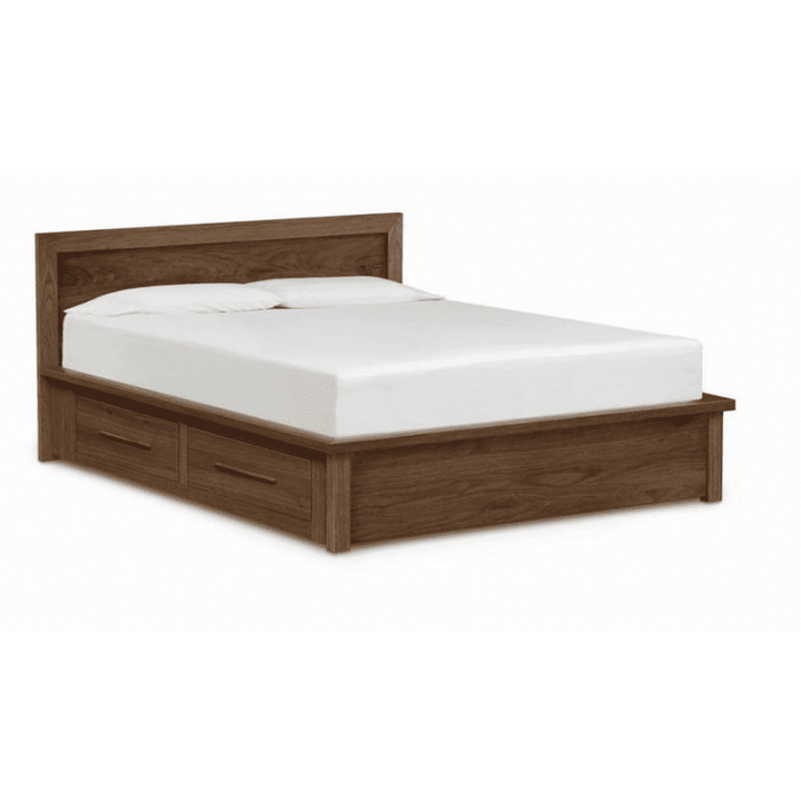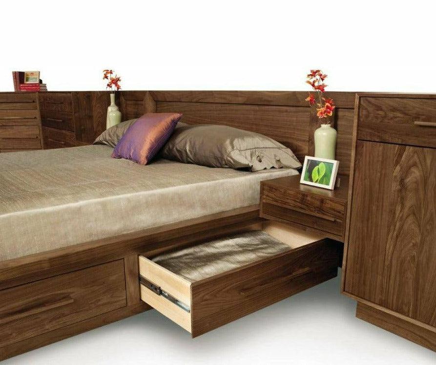 Our modern Moduluxe Bedroom Furniture Collection is handmade in Vermont using eco-friendly, sustainably harvested natural woods. Moduluxe is a highly configurable bedroom and storage system that can adapt to most spaces and needs. Moduluxe Beds, configured for mattress only, may be ordered in multiple headboard designs with either under-bed storage or with a deeply in-set plinth base for a dramatic floating motif. All beds are available with attachable nightstands with either a flat shelf or single drawer storage. For adjustable mattress options, the Harlequin Mattresses are the perfect fit!