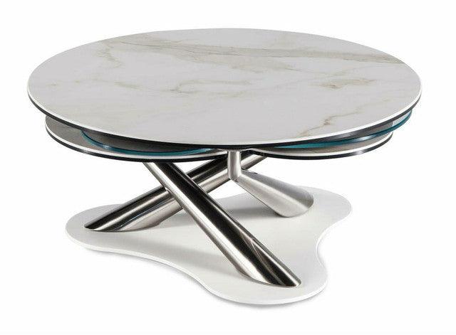 The Mayflower Cocktail Table by Naos is not just a piece of furniture but a testament to exceptional craftsmanship and innovative design. Made in Italy, this extendable cocktail table exemplifies the unique and groundbreaking mechanism for which Naos, the original innovator of motion dining and occasional tables, is renowned. Featuring a sleek chrome structure and elegant glass top, the Myflower table transforms with a fluid, almost floral motion, opening and closing with ease. This table is a centerpiece that combines functionality, art, and the epitome of Italian design prowess.