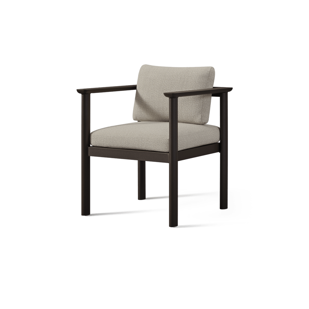 The Newport Aluminum Dining Chair by Harbour brings a sleek architectural statement to outdoor dining. Designed with sculptural oval-shaped legs and a geometric silhouette, this chair combines a bold modern aesthetic with exceptional comfort. Featuring a deep seat, wide flat arms, and superior weather-resistant materials, it's the perfect blend of form and function for any sophisticated outdoor setting.