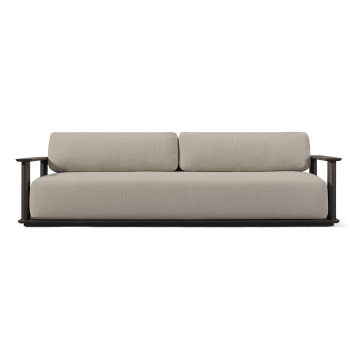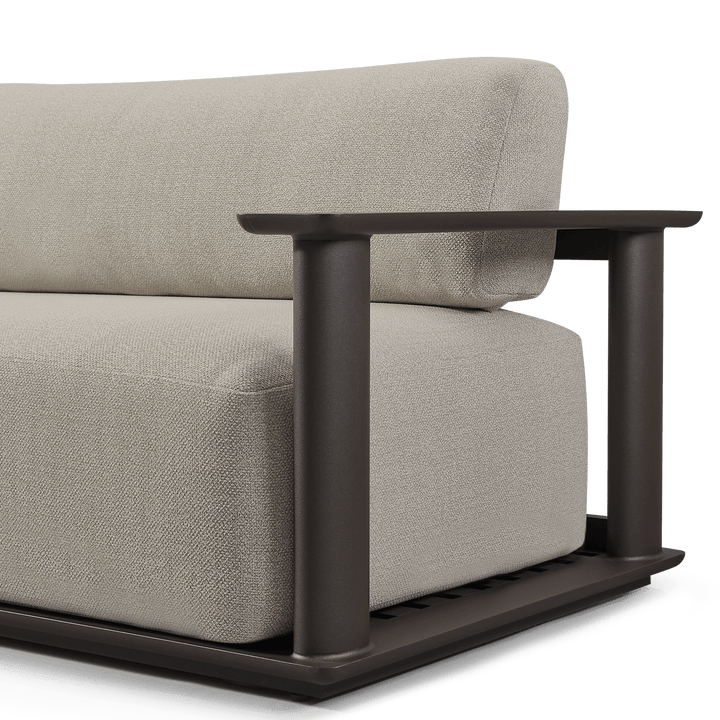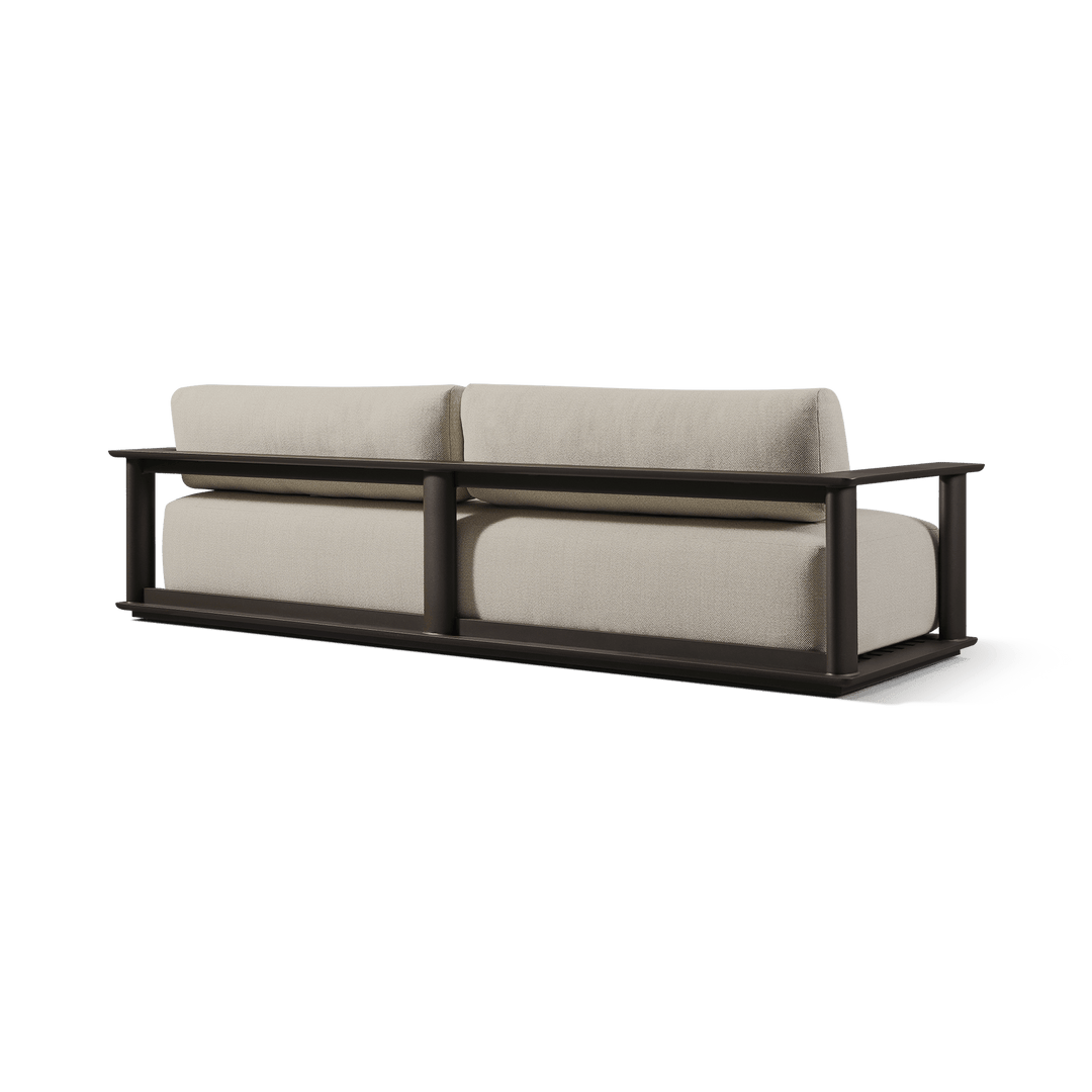 The Newport Aluminum Sofa 108" by Harbour offers a masterful balance of architectural elegance and outdoor comfort. With a bold, geometric silhouette and distinctive oval-shaped legs, this piece is both sculptural and inviting. Its wide, flat arms and deep seat invite hours of relaxation, while its clean lines elevate any outdoor setting with minimalist sophistication.