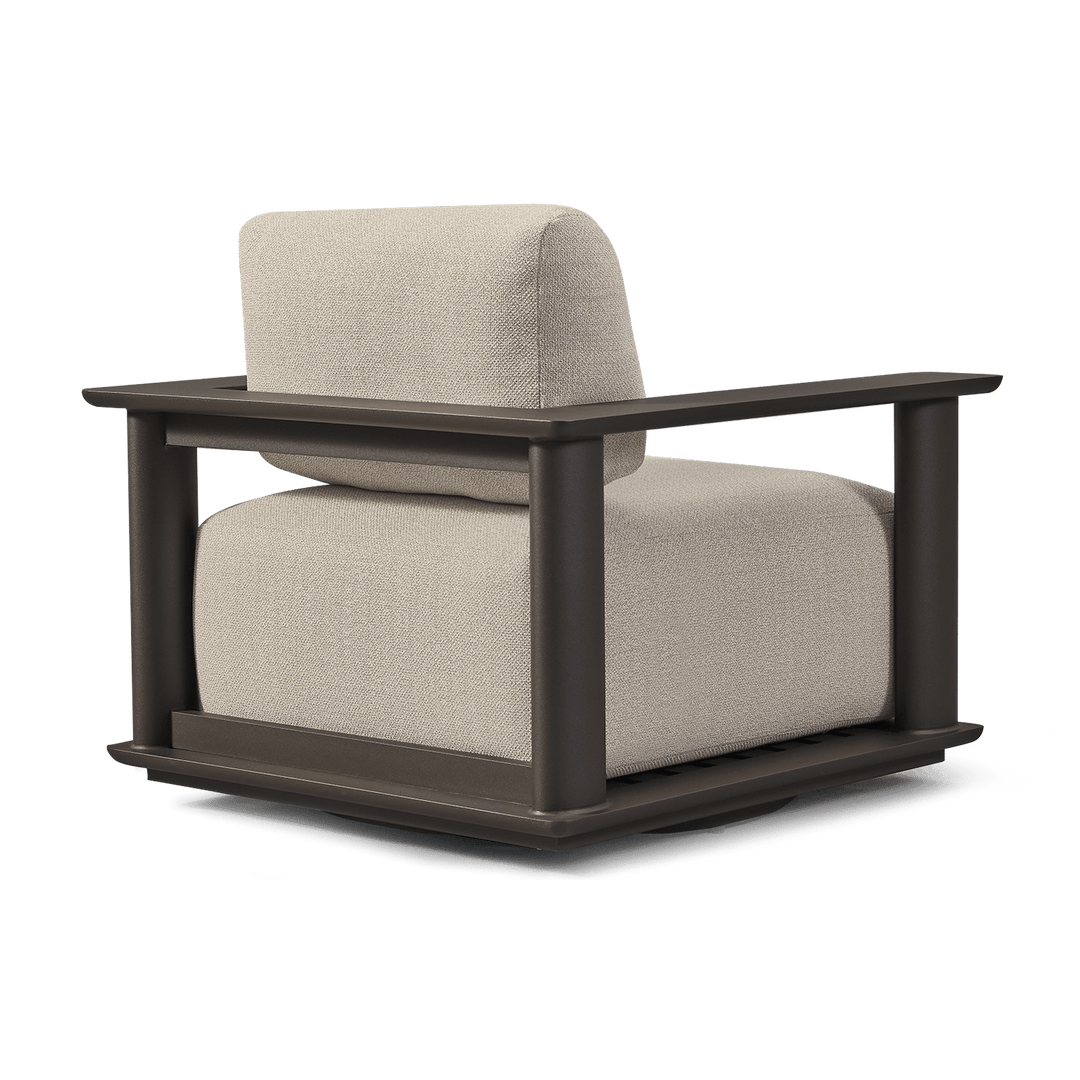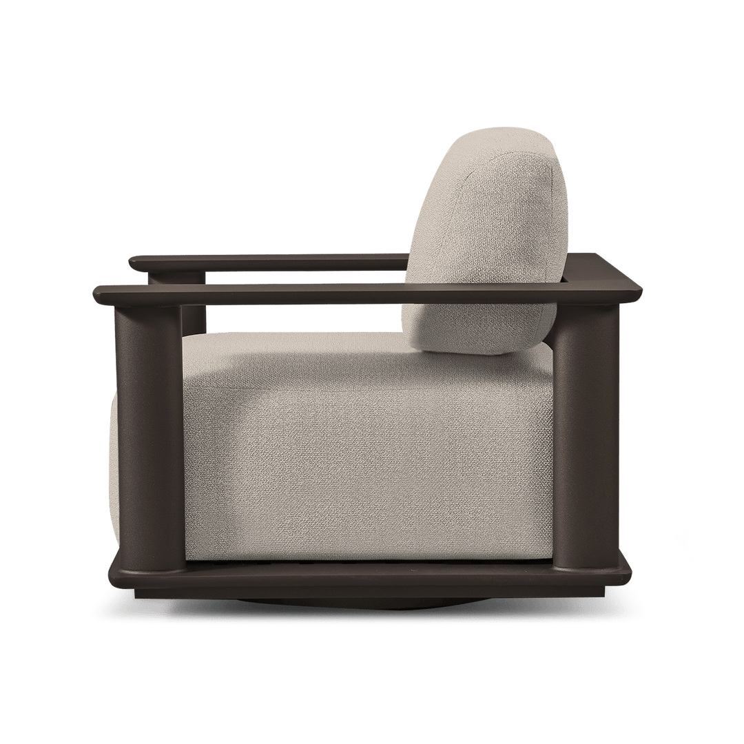 The Newport Aluminum Swivel Lounge Chair by Harbour redefines outdoor comfort with a modern edge. Merging architectural form with everyday functionality, this chair features Harbour’s signature oval-shaped aluminum legs, a geometric silhouette, and the added benefit of a smooth swivel base—perfect for dynamic lounging and conversation.