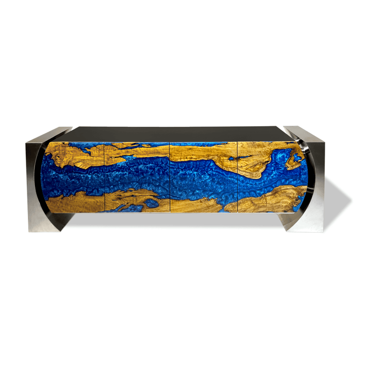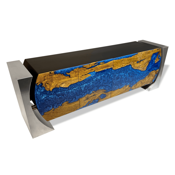 Olive Wood Pearlescent Blue Silver Loire Credenza