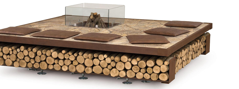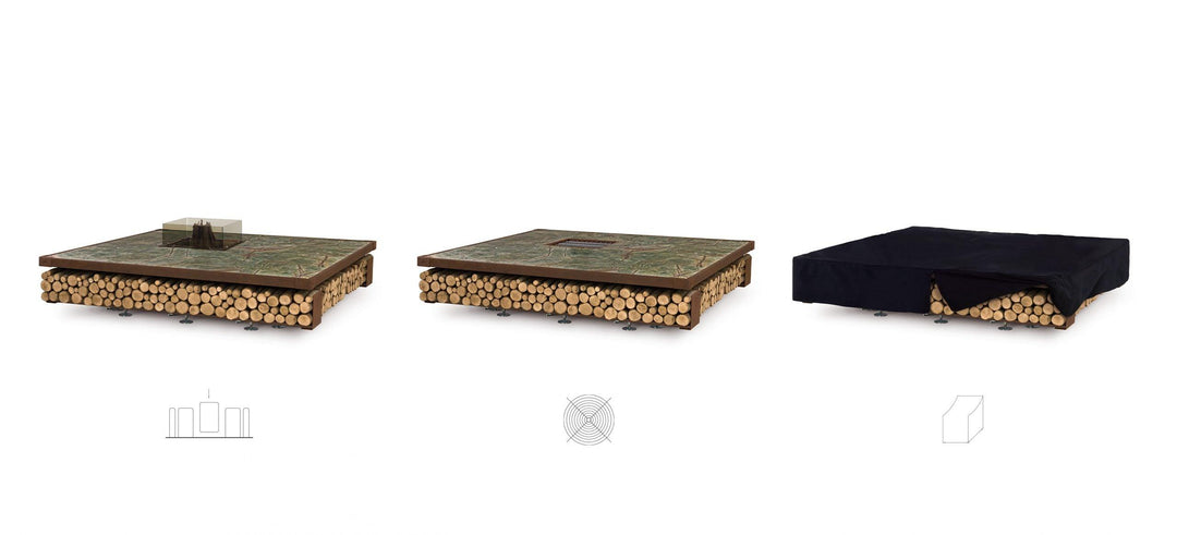 The Opera Fire Pit not only serves as a source of warmth but also as a functional piece of art. Its design includes a spacious area for log storage beneath the seating surface, enhancing both its utility and aesthetic appeal. Complete with a steel cover plate to protect against the elements, the Opera ensures that its flames are safely contained, making it a perfect addition to any gathering.