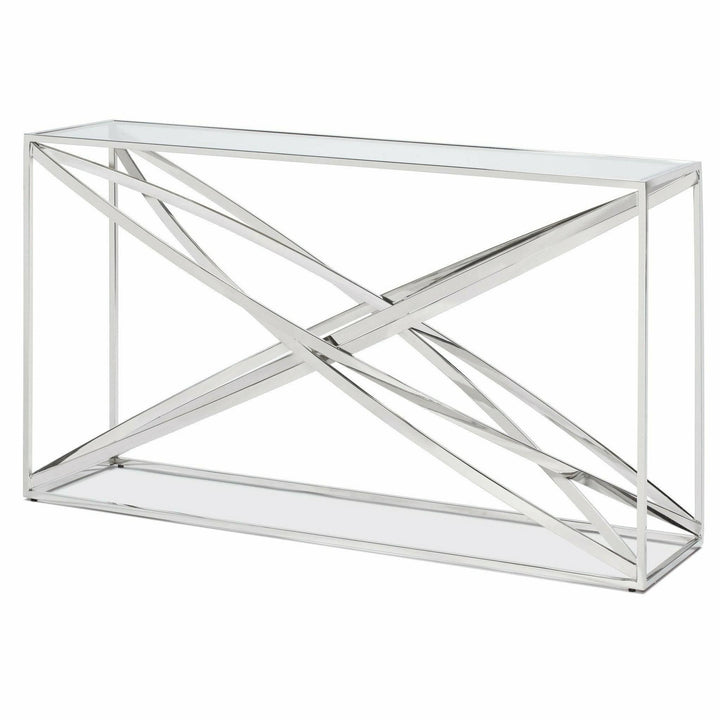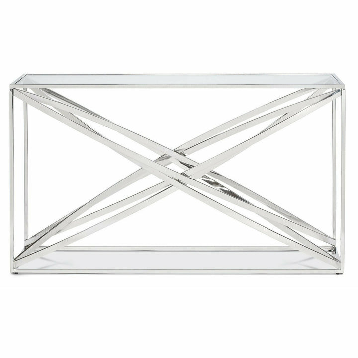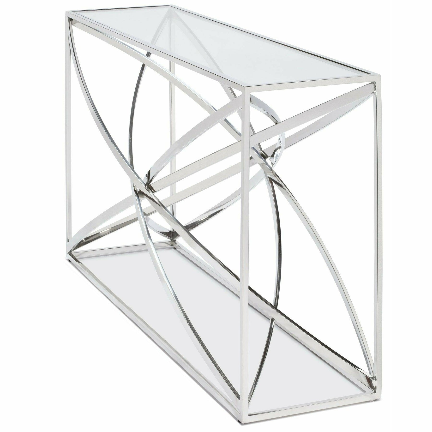 Inspired by spatial design, this console table features overlapping oval lines that are equally balanced. Aesthetically pleasing with a heavy touch of modern, it easily complements any decor.