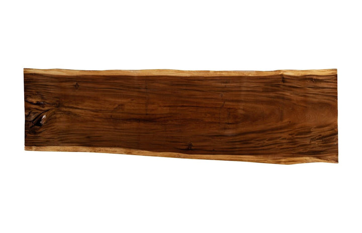 Featuring a live edge design, the Origins Dining Table showcases the raw and organic beauty of the wood, with a natural finish that highlights its unique grain and texture. The sleek satin black legs provide a modern touch and sturdy support for the table.