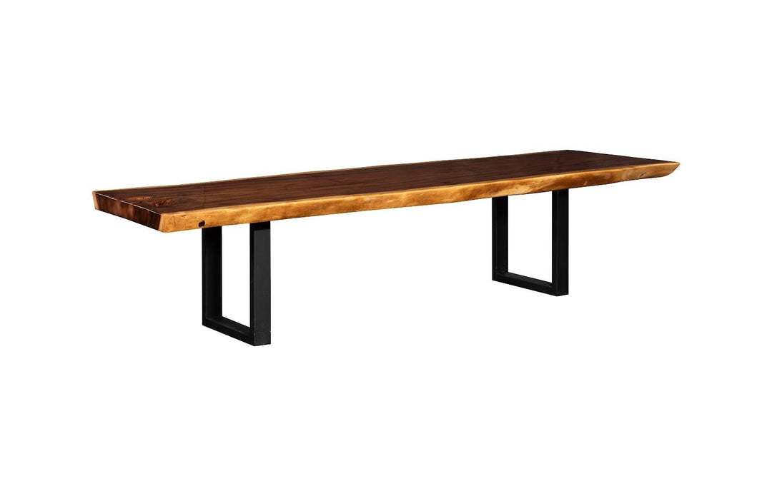Introducing our Origins Dining Table with Live Edge, Natural Finish, and Satin Black Legs - ID113629. Crafted from high-quality materials, this dining table is a stunning piece that perfectly combines natural beauty with modern design.