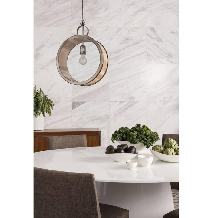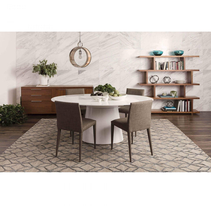 Nestled on top of a high-gloss lacquer pedestal, the Entourage Table features clean lines and a contemporary modern style that is sure to brighten up your dining area with its glossy white tabletop and circular design. Brushed stainless steel detailing completes this table's seamless design.