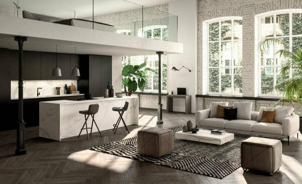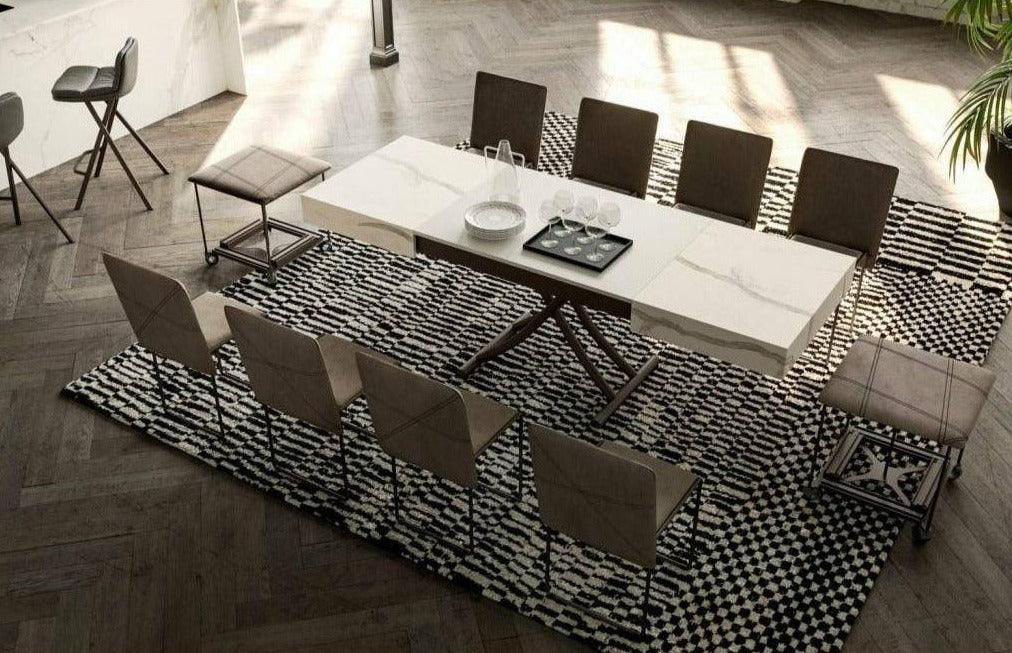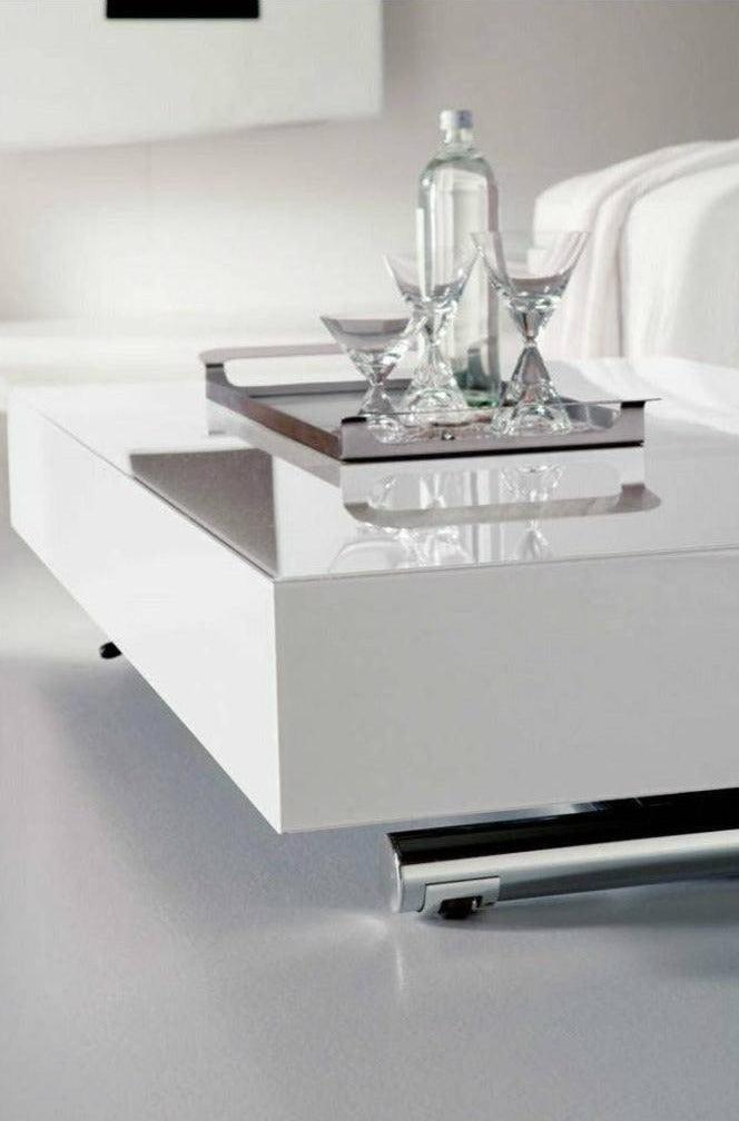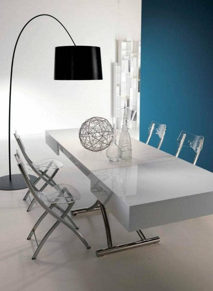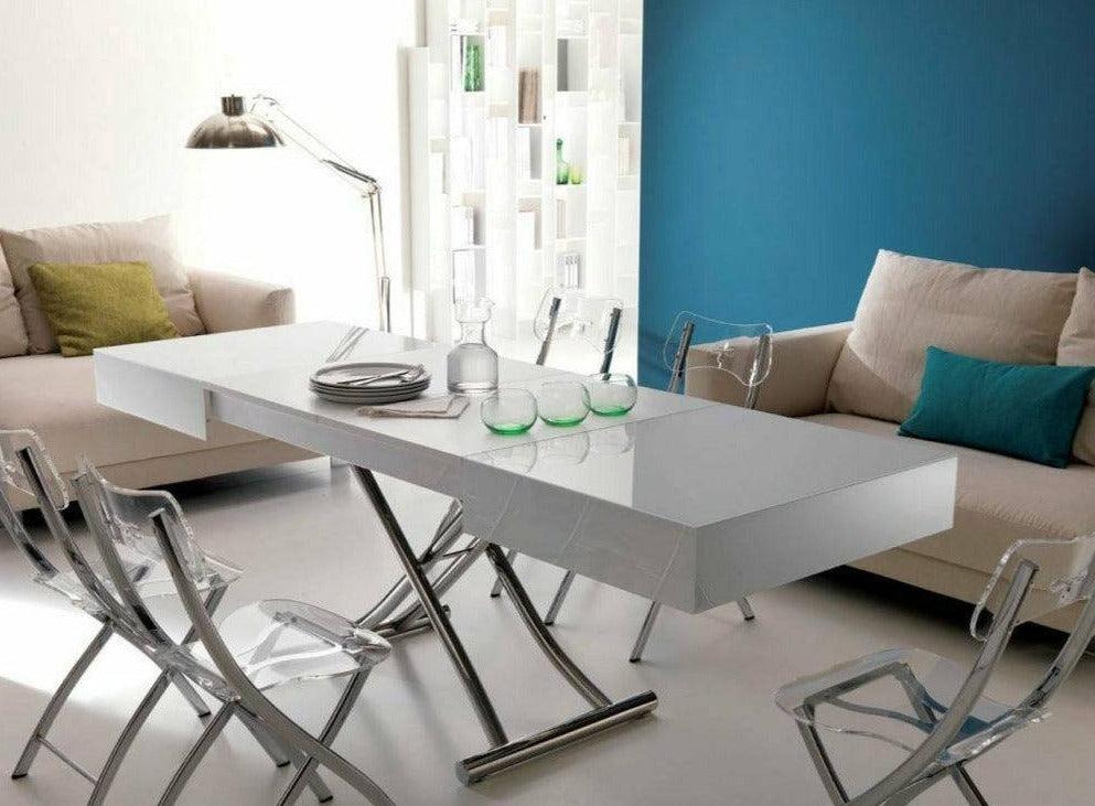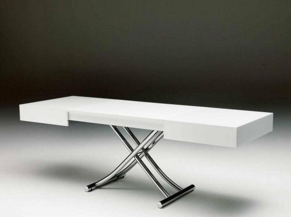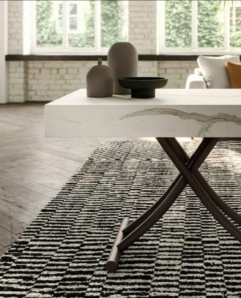 The Box coffee table by Ozzio has marble Glass finishing that is Iconic and multifunctional, this transformable table with an essential appearance is the beating heart of domestic conviviality. Extensions are cleverly hidden inside the top, synchronized telescopic opening, millimeter-assisted lift with gas piston, and hidden wheels for easy movement in the living area.