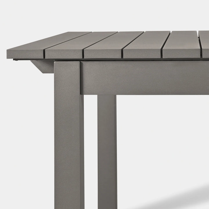 Our Pacific Aluminum collection features clean lines with a California rustic essence. The Pacific Aluminum Extension Dining Table is the perfect gathering place for up to twelve — handcrafted in powder-coated aluminum with a simple slatted top. This piece effortlessly fits in any space and quickly expands with a folding leaf mechanism to accommodate impromptu guests.