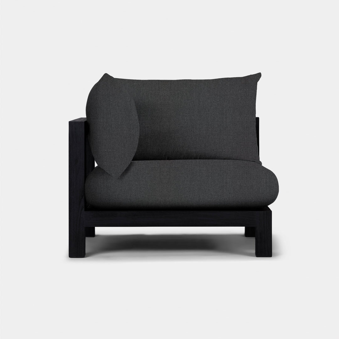The Pacific collection features clean lines with a California rustic essence. The Corner is streamlined comfort — relax on a plush domed bench cushion with a pair of knife–edge back cushions, supported by a Batyline sling suspension for added comfort. Handcrafted from square beams of solid Grade A Indonesian teak, this coastal piece effortlessly fits any smaller space.