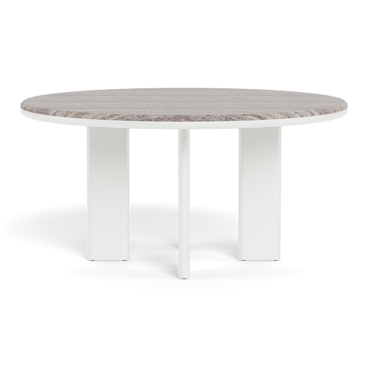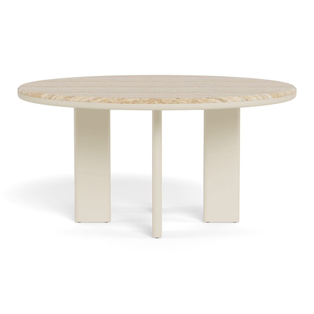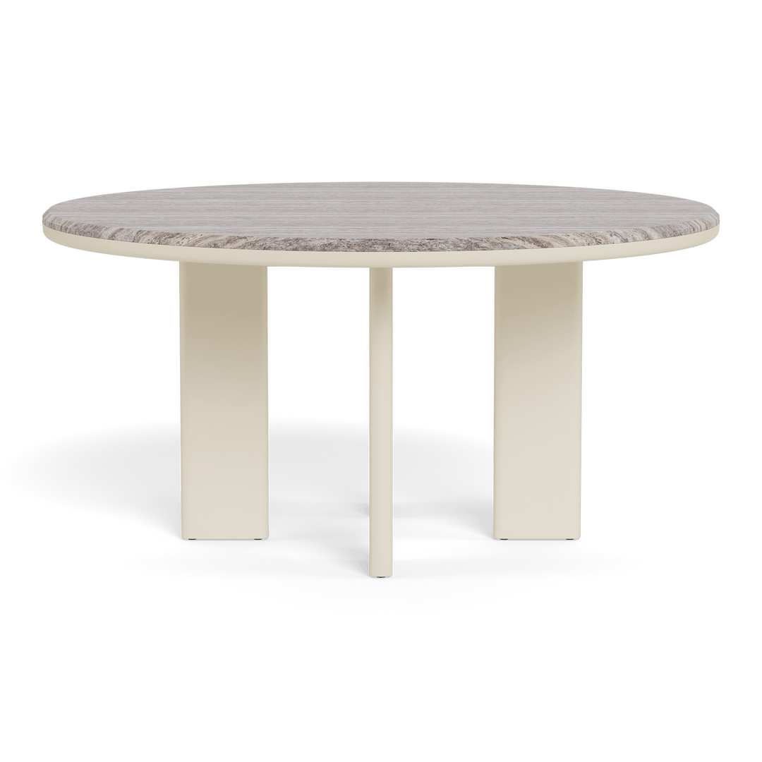 The Palm Beach Aluminum Round Dining Table 60" by Harbour brings together timeless form and modern resilience, offering a beautiful solution for casual outdoor dining. Inspired by Sydney’s iconic coastal charm, this Parsons-style table features angled powder-coated aluminum legs and a natural travertine top—a stunning contrast of strength and elegance.