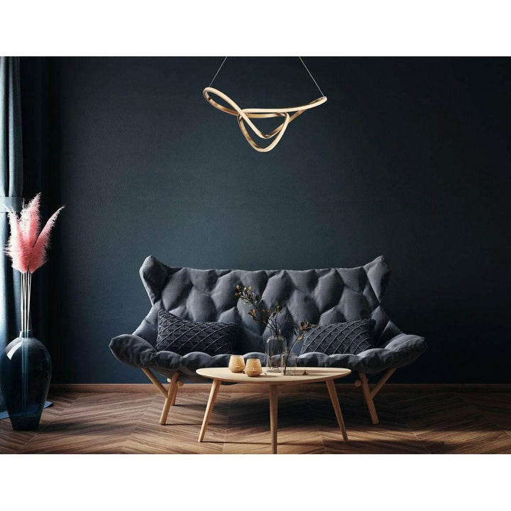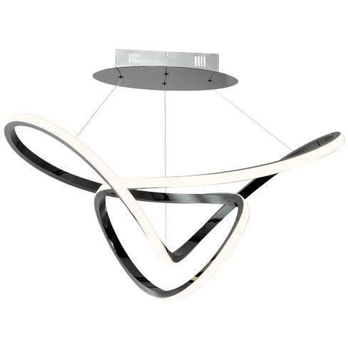 Sweeping lines curve and curl in a continuous motion, finished in a rich Brushed Champagne or Black Chrome. Not just a lighting fixture but a sculptural work of art. Gentle illumination moves in all directions for a dramatic lighting effect.