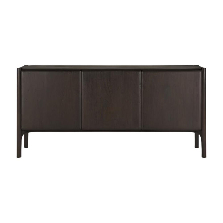 The PI Sideboard by Ethnicraft pays homage to nature’s inherent beauty with its organic strength, curves, and lines. Each piece is carefully handcrafted, resulting in a sleek yet polished imperfect finish that highlights the unique character of the wood. With its clean and minimalist design, the PI sideboard offers practical storage options while standing out as a unique statement piece in any room. Available in two stunning finishes—Natural Oak and Tak Brown—this sideboard complements a wide variety of interior styles, from modern to rustic.