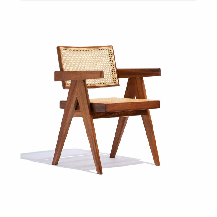 The Pierre J Arm Teak Full Wicker is a contemporary chair with a natural cane back and seat. Pierre J Stools Teak Full Wicker is designed by the Industrial Modern team and it's suitable for both residential and commercial use.