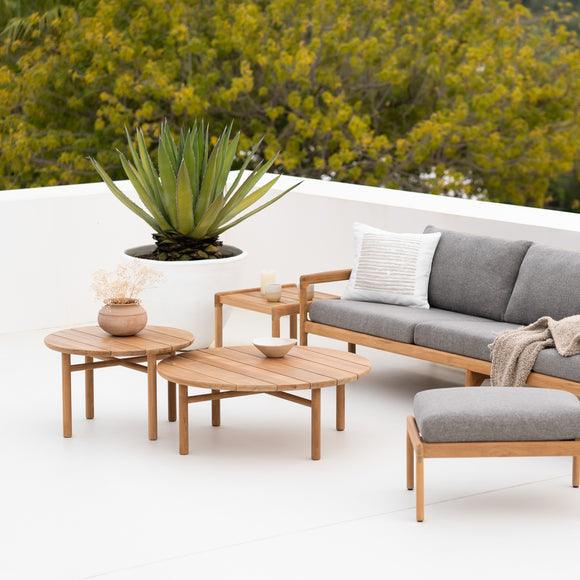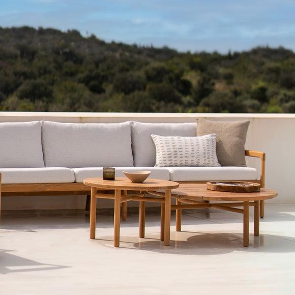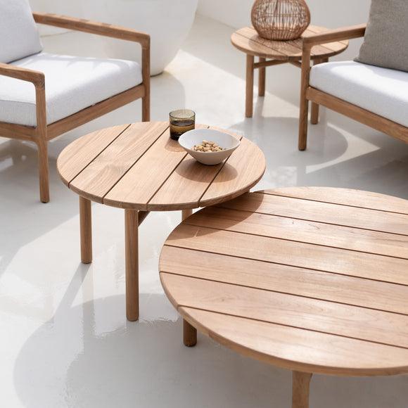 The Quatro Outdoor Coffee Table by Ethnicraft epitomizes elegance and functionality for outdoor spaces. This versatile coffee table, crafted from solid teak wood, features a robust design that's perfect for integrating into any exterior decor. Whether placed beside a pool, on a patio, or in a garden setting, the Quatro table's classic circular shape and sturdy construction make it an essential addition to any al fresco gathering space.