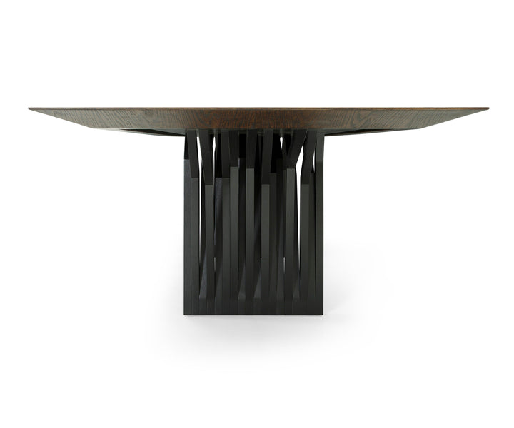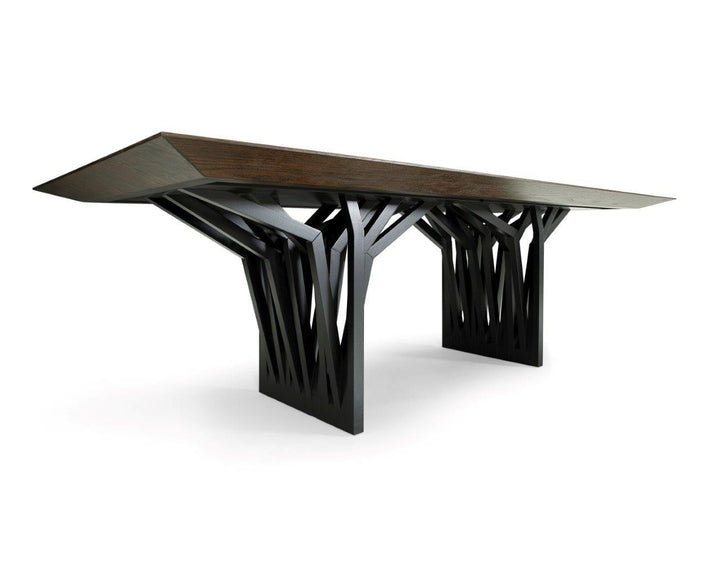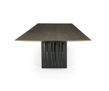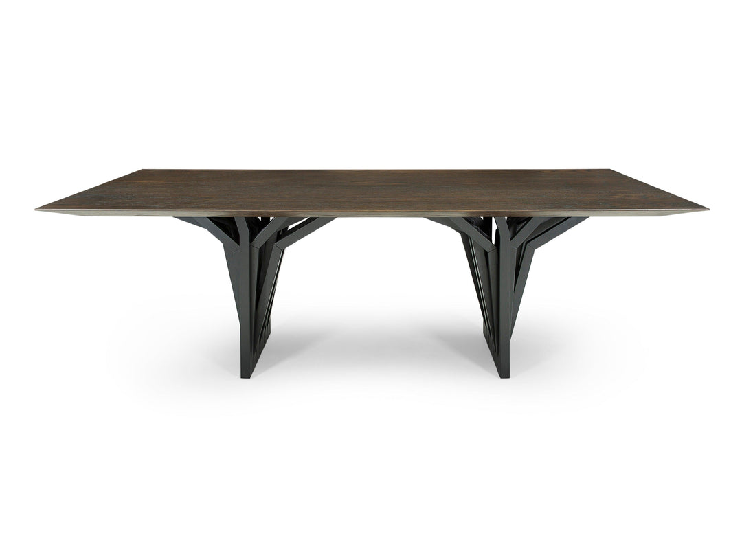 The RADI Dining Table by Uultis is a majestic fusion of bold aesthetics and architectural precision, designed to command attention and anchor any dining space. Spanning an impressive 98 inches and finished in a striking black and dark oak, this table is a testament to Uultis's commitment to creating furniture that's both a focal point and a gathering place. The RADI table's substantial size is balanced by the rich, nuanced tones of dark oak, offering an air of grandeur while remaining warm and inviting.
