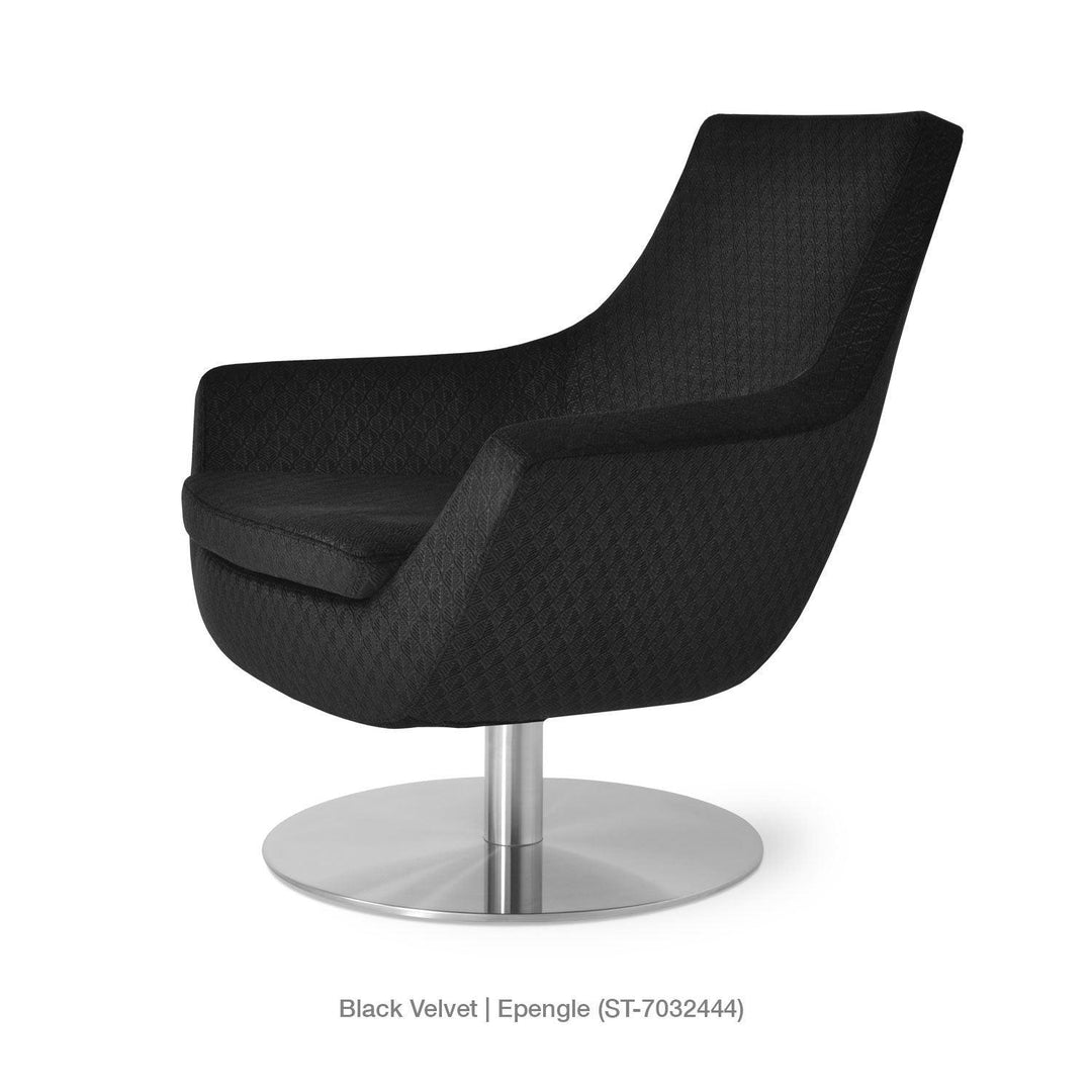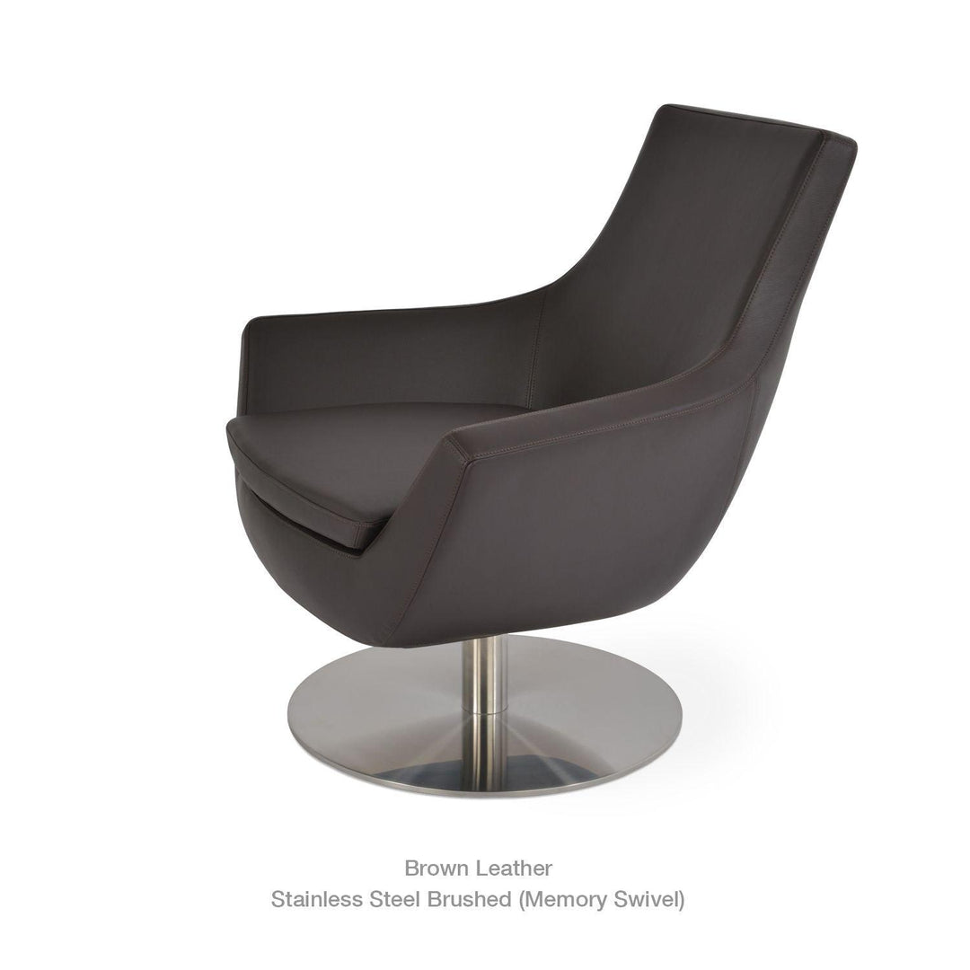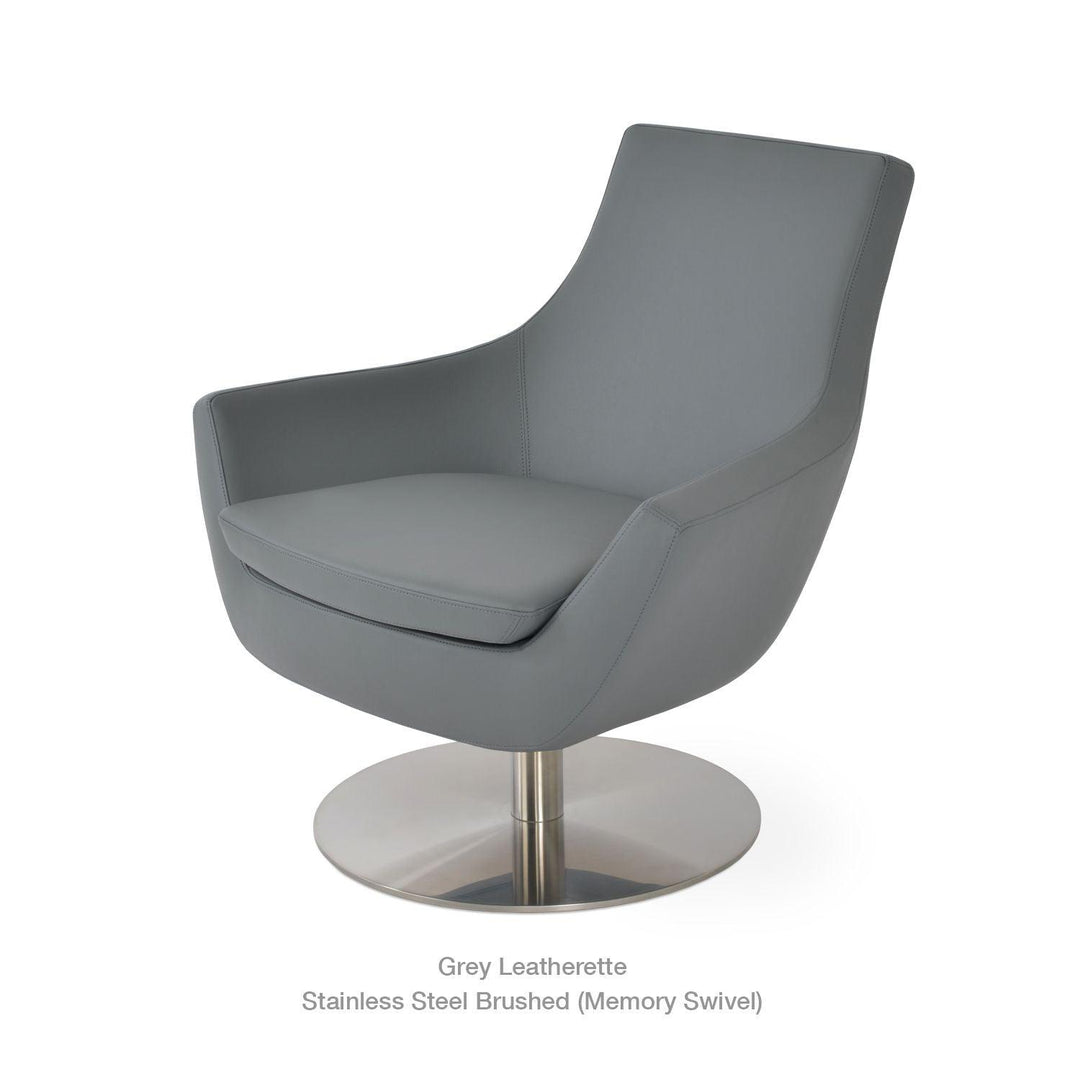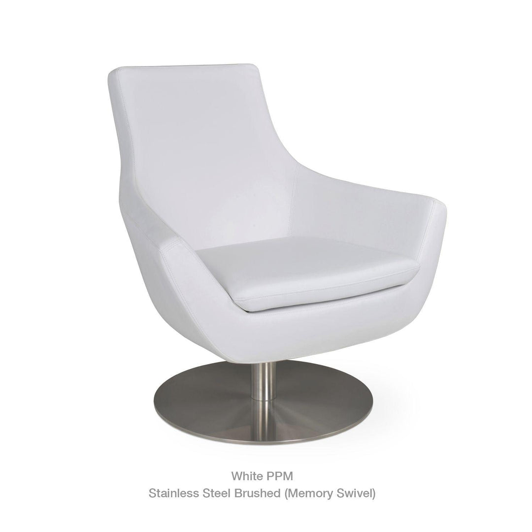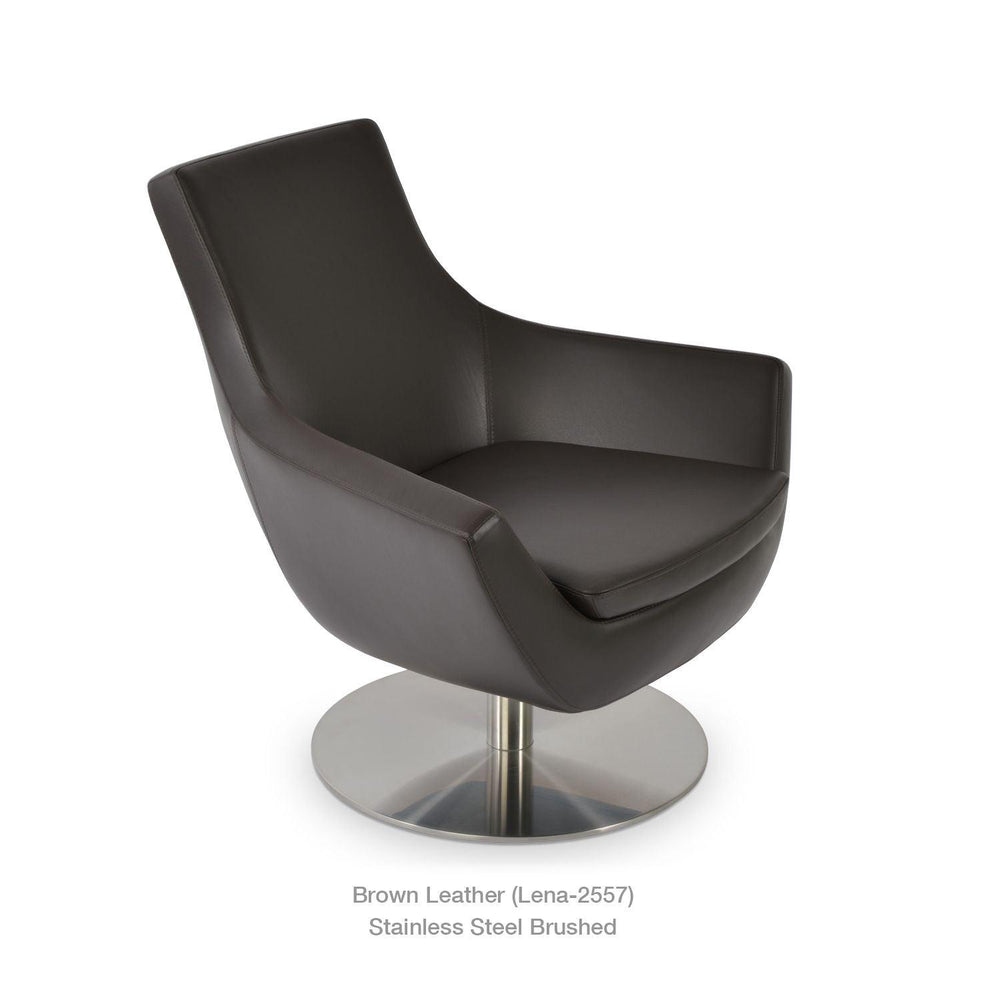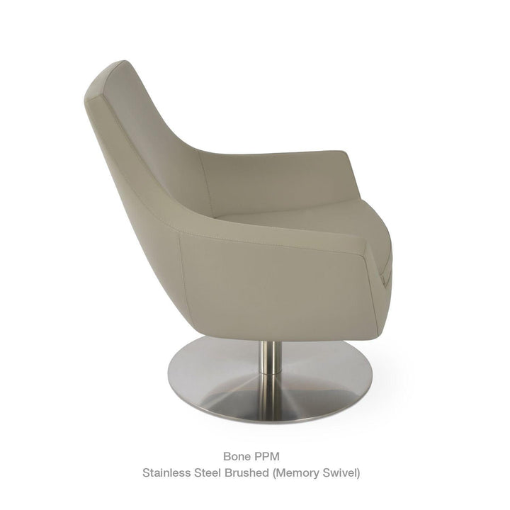 Rebecca Swivel is an armchair of modern chic design, with a swivel chrome plated solid steel base. The padded seat cushion enhances the comfort of the chair. The seat has a steel structure with “S” shape springs for extra flexibility and strength. This steel frame is molded by injecting polyurethane foam. The Rebecca seat is upholstered with leather, PPM, or wool fabric. The chair is suitable for both residential and commercial use.