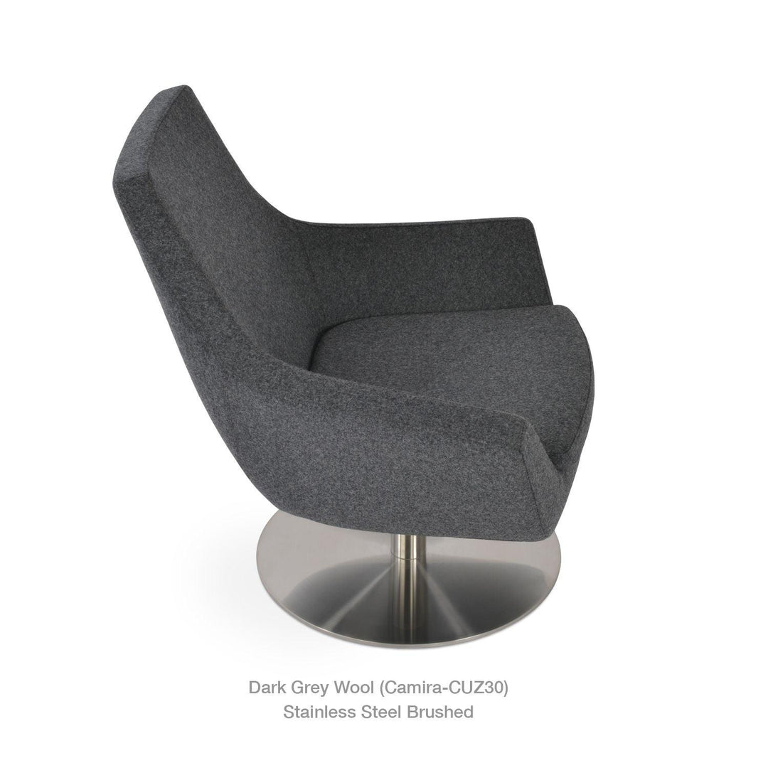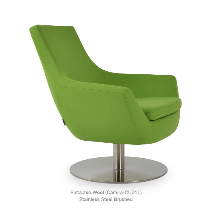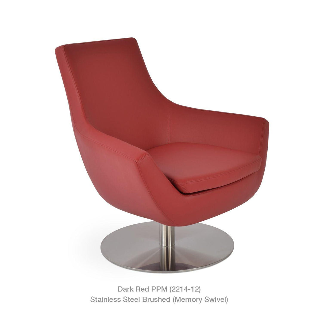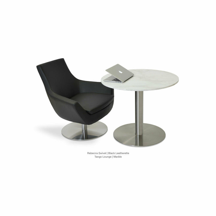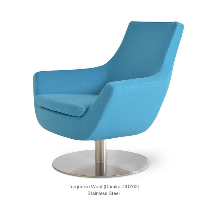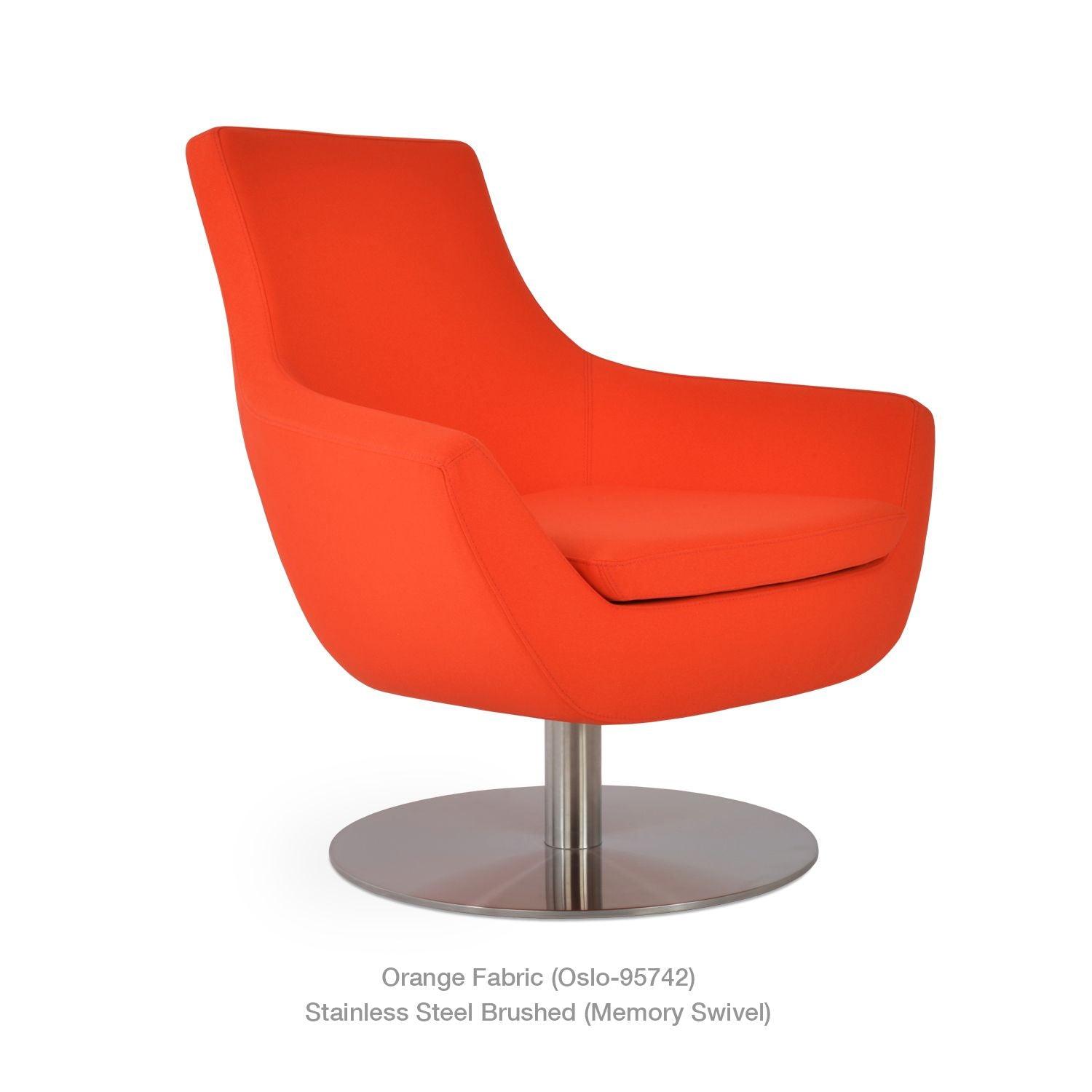 Rebecca Swivel is an armchair of modern chic design, with a swivel chrome plated solid steel base. The padded seat cushion enhances the comfort of the chair. The seat has a steel structure with “S” shape springs for extra flexibility and strength. This steel frame is molded by injecting polyurethane foam. The Rebecca seat is upholstered with leather, PPM, or wool fabric. The chair is suitable for both residential and commercial use.