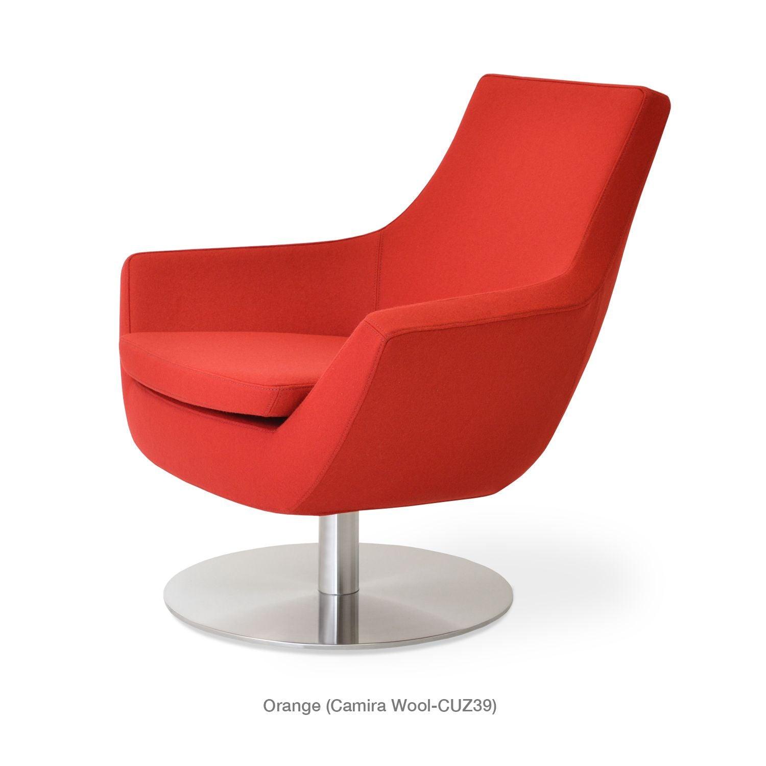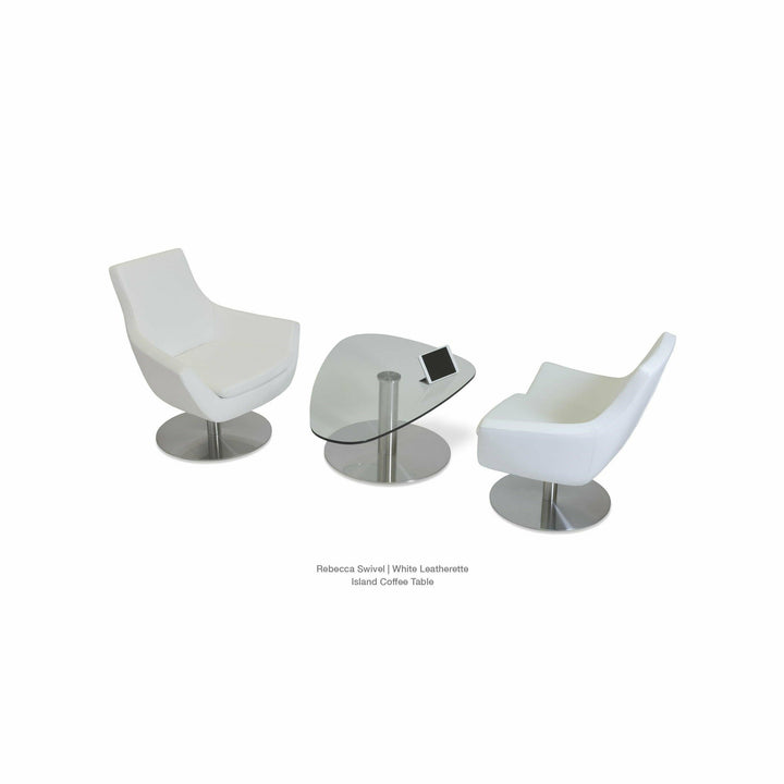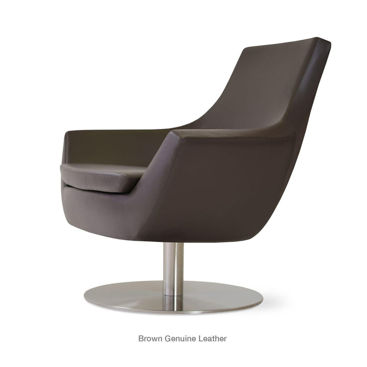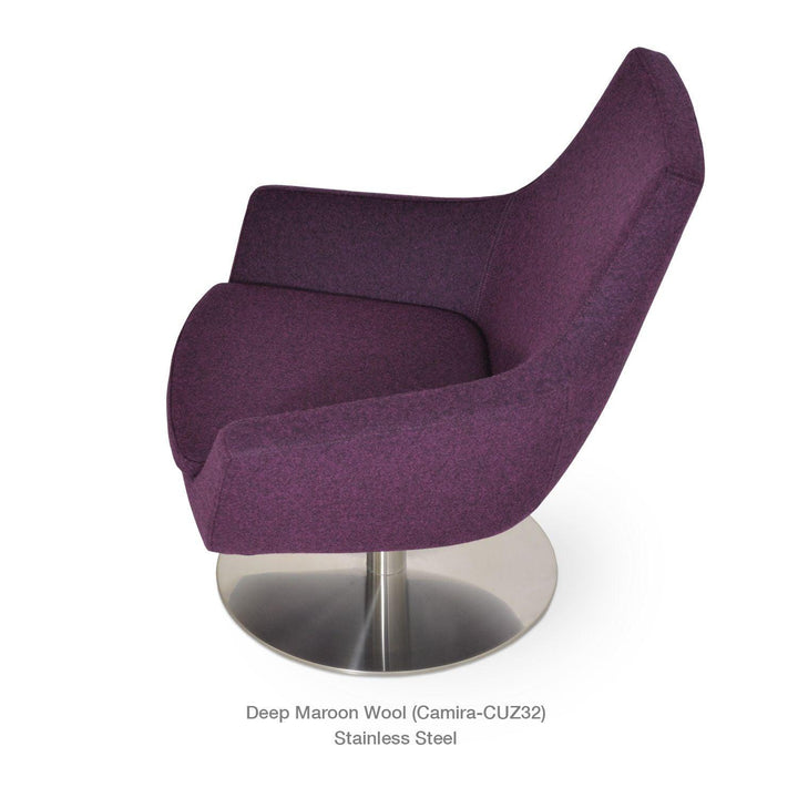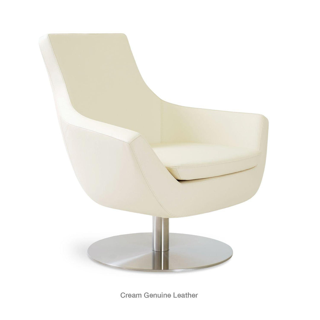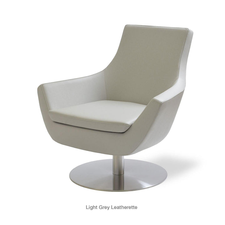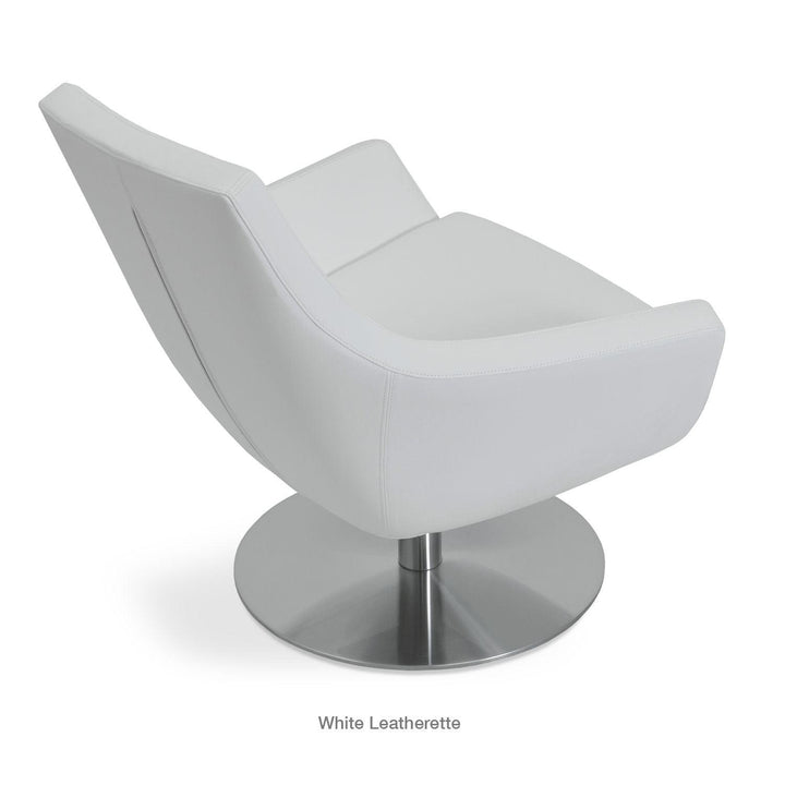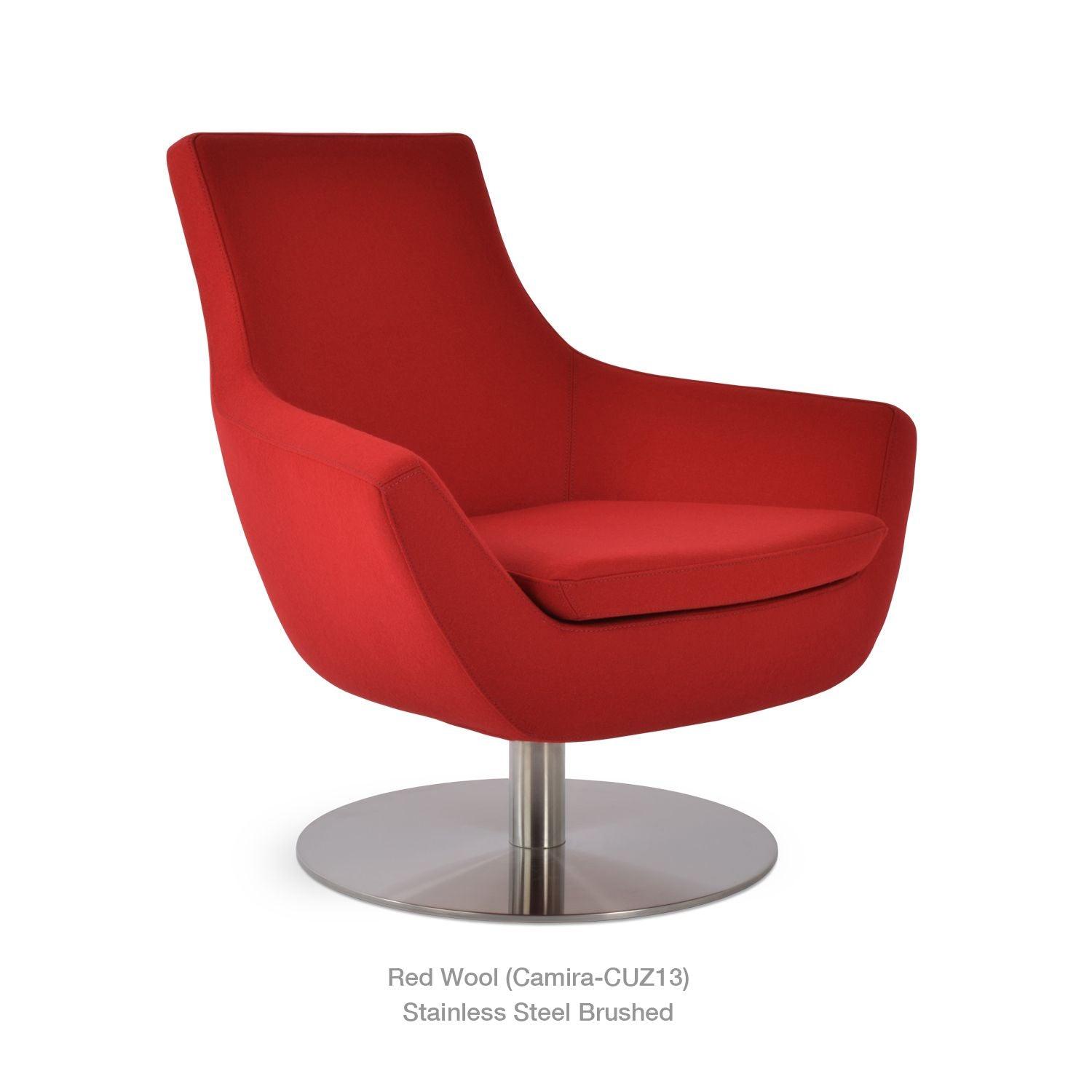 Rebecca Swivel is an armchair of modern chic design, with a swivel chrome plated solid steel base. The padded seat cushion enhances the comfort of the chair. The seat has a steel structure with “S” shape springs for extra flexibility and strength. This steel frame is molded by injecting polyurethane foam. The Rebecca seat is upholstered with leather, PPM, or wool fabric. The chair is suitable for both residential and commercial use.