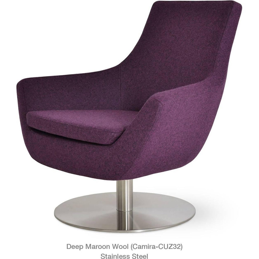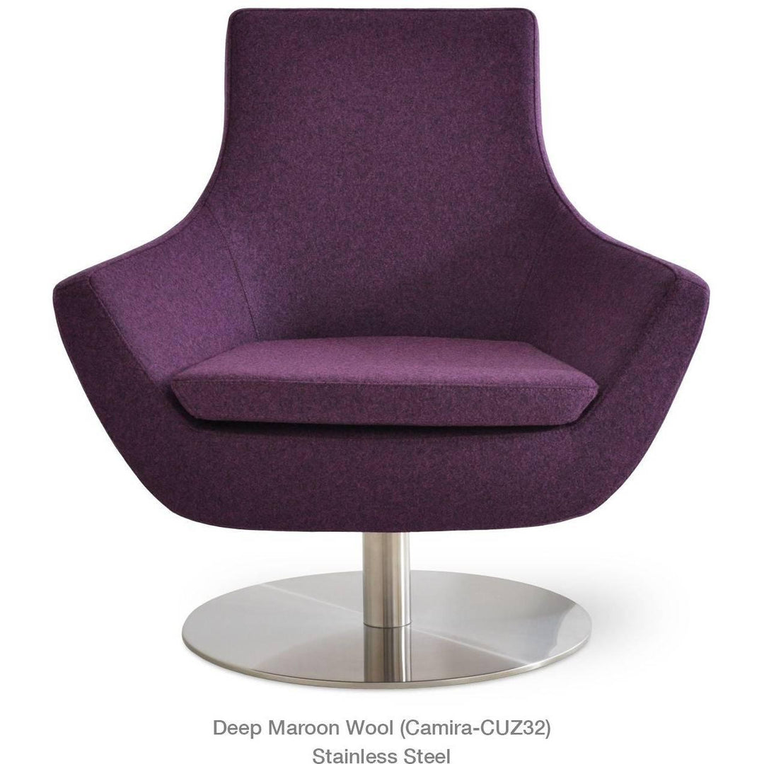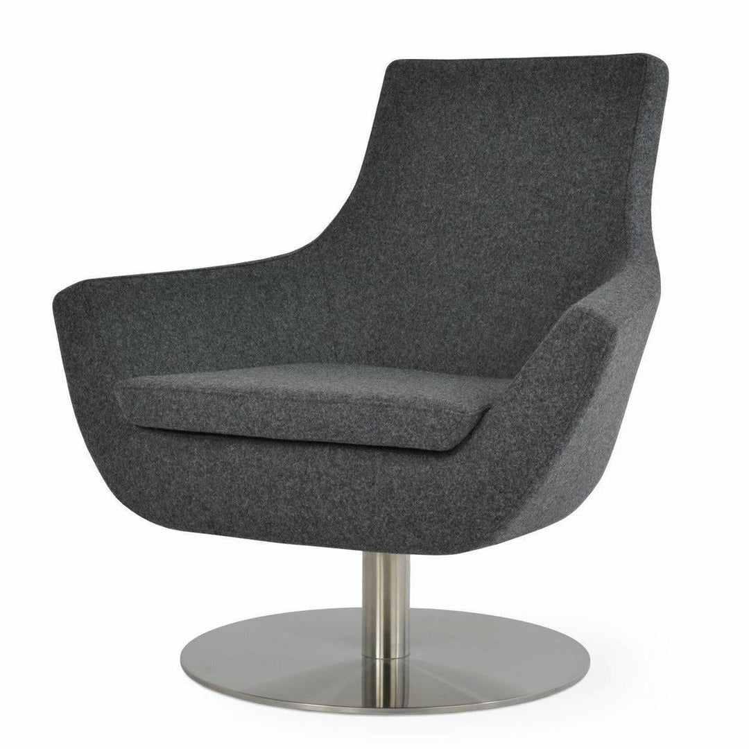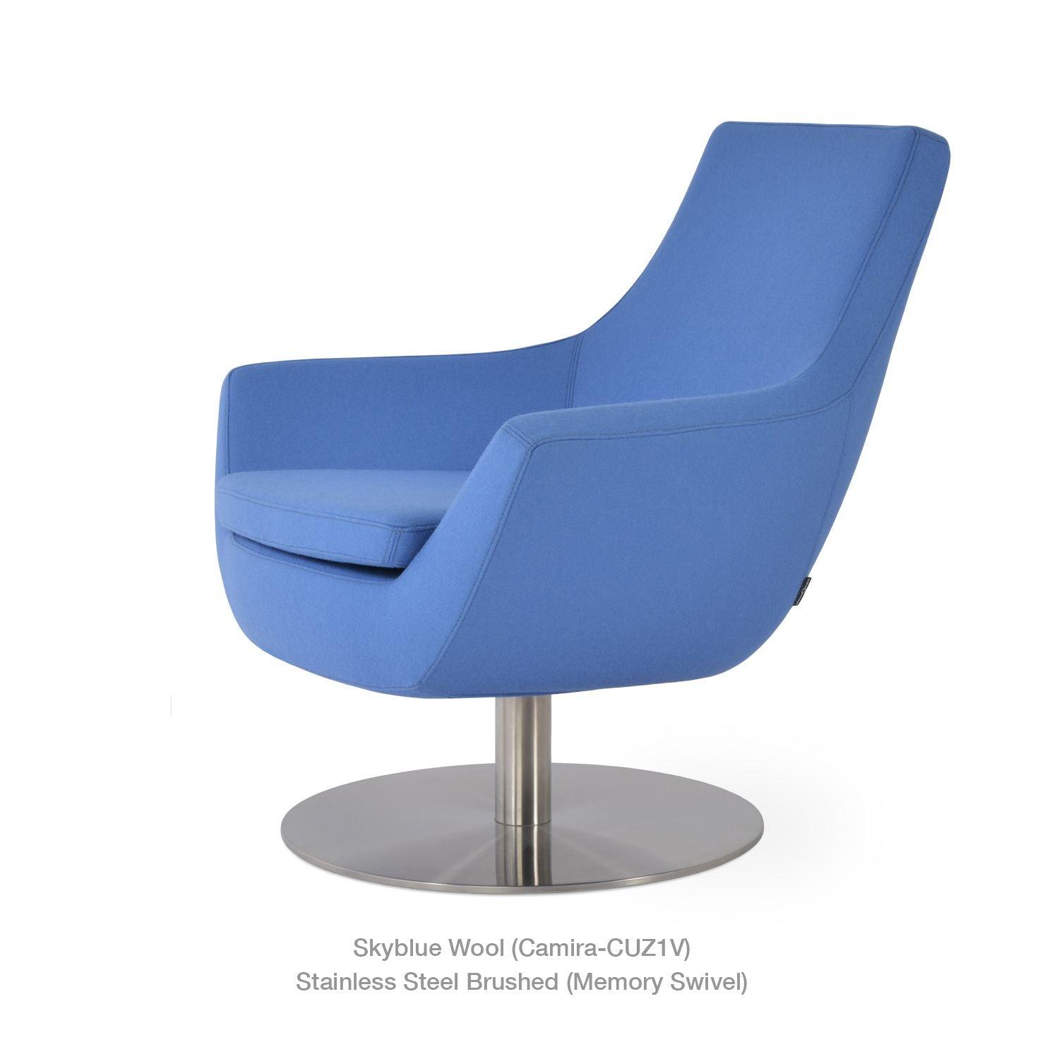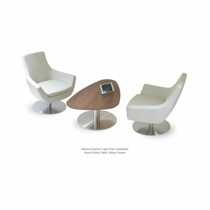 Rebecca Swivel is an armchair of modern chic design, with a swivel chrome plated solid steel base. The padded seat cushion enhances the comfort of the chair. The seat has a steel structure with “S” shape springs for extra flexibility and strength. This steel frame is molded by injecting polyurethane foam. The Rebecca seat is upholstered with leather, PPM, or wool fabric. The chair is suitable for both residential and commercial use.