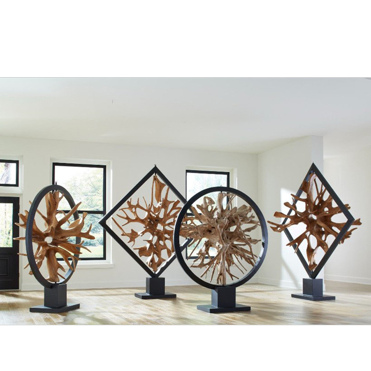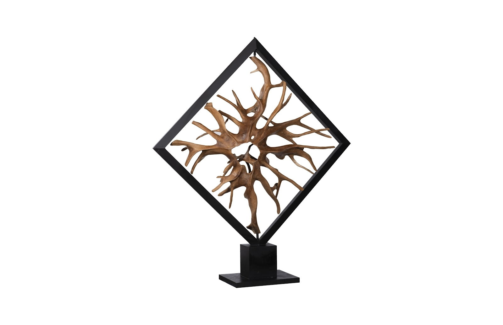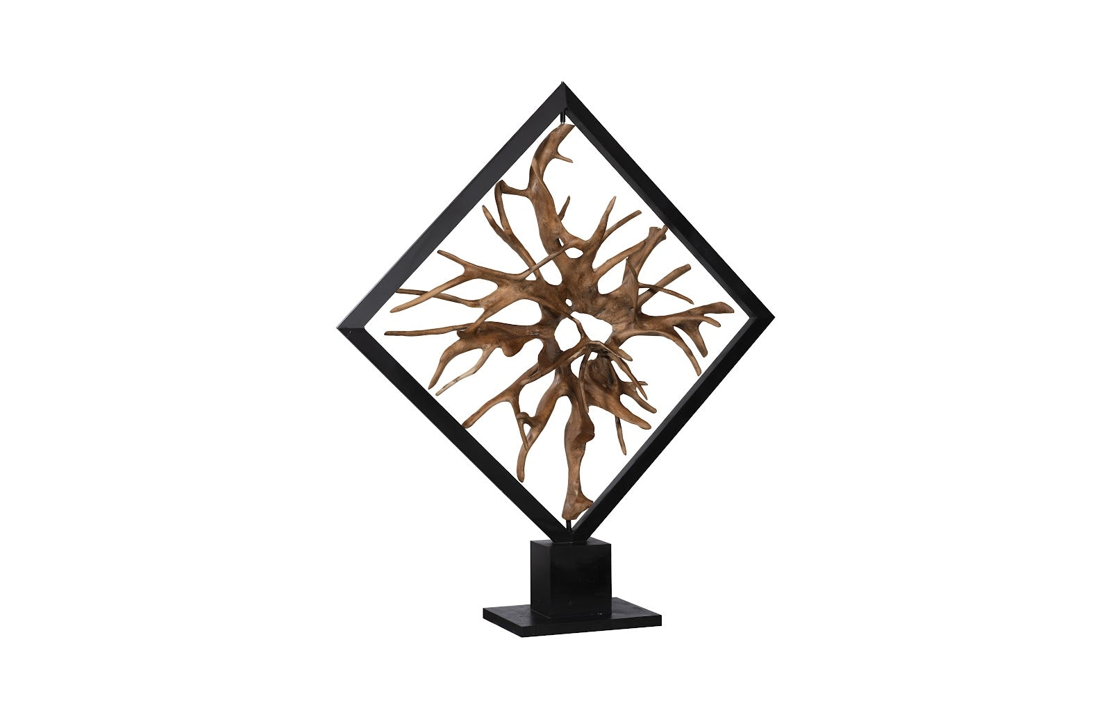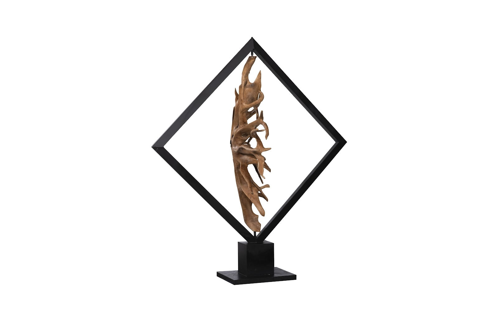 The Revolving Diamond Teak Wood Sculpture by Phillips Collection is a captivating masterpiece crafted from natural teak wood. Its revolving, diamond-like structure brings a striking visual element to any space, blending modern organic design with the rustic charm of natural wood. Each piece showcases the beauty of teak's unique grain and form, making this sculpture a truly one-of-a-kind addition to your home or office.