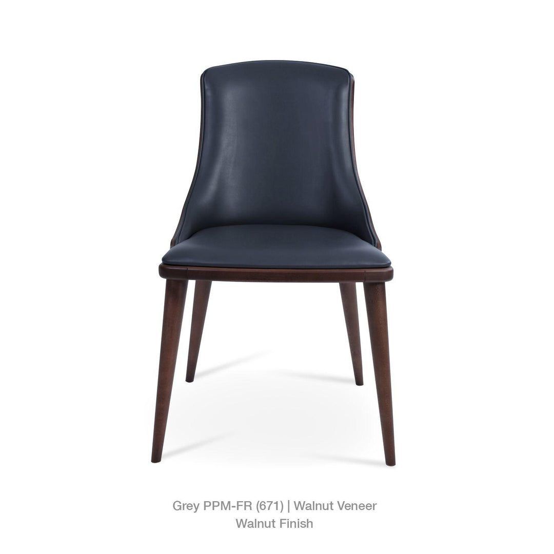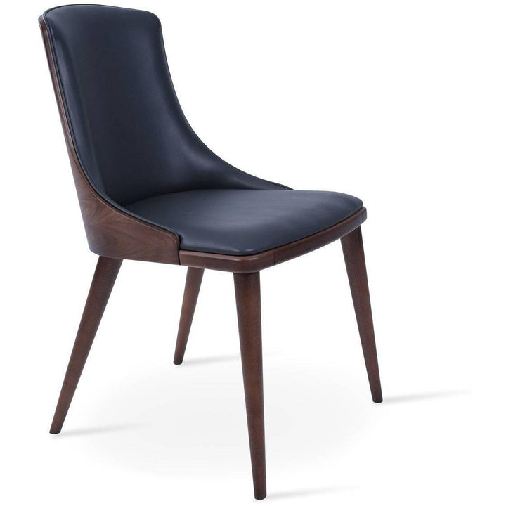 The Romano Chair is a contemporary chair with an upholstered seat with a walnut back. The legs are finished in a solid beech walnut finish. The Industrial Modern team designs Romanow Dining, which is suitable for residential and commercial use.