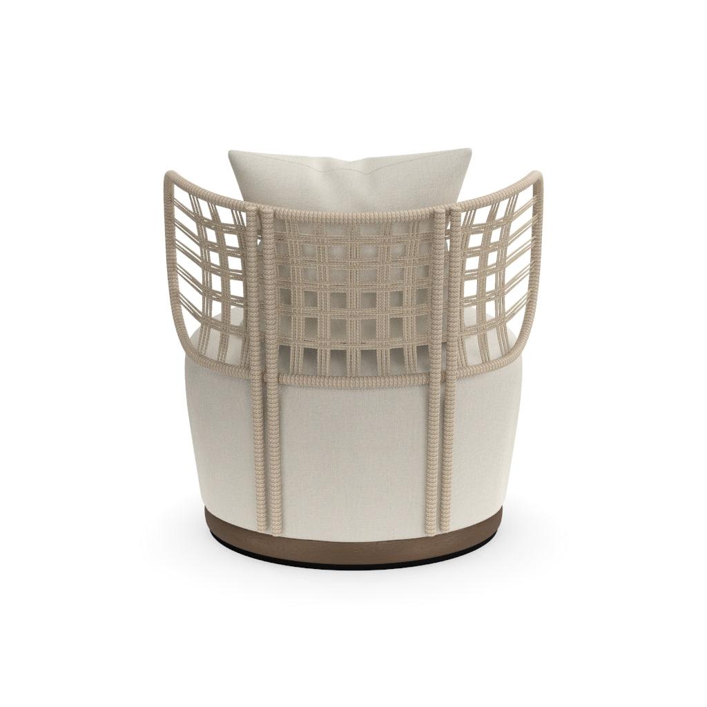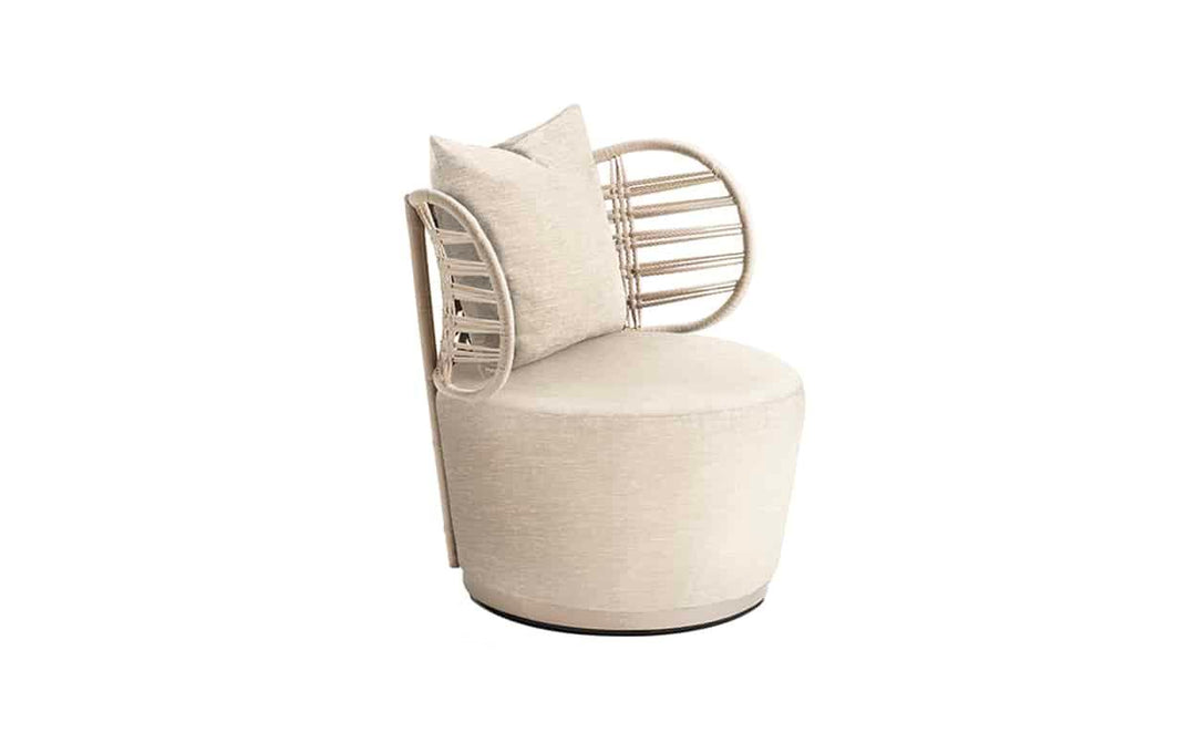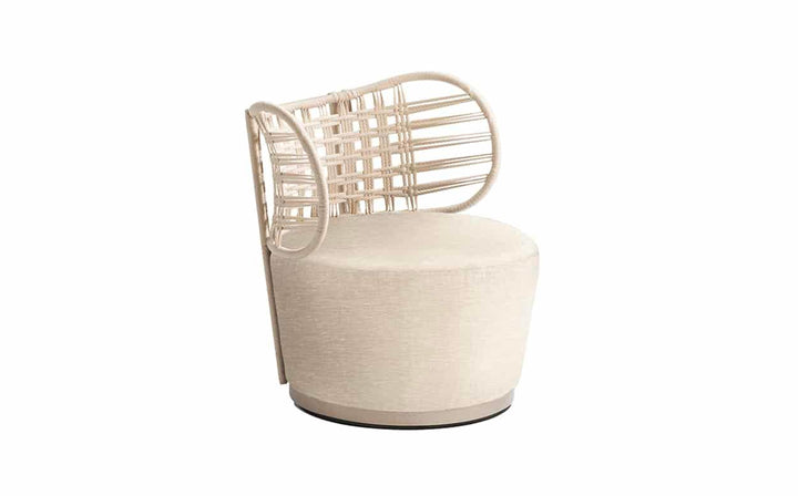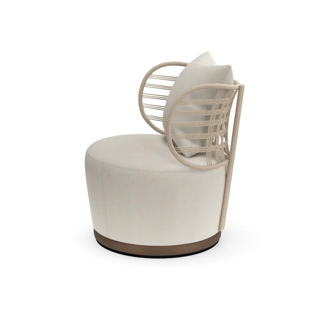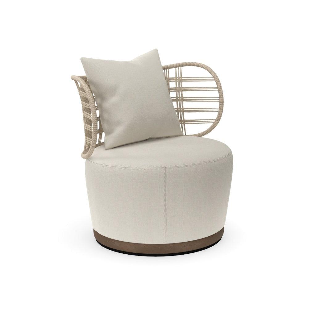 Discover the epitome of refined relaxation with the RUMBA Upholstered Chair 111 (SWIVEL). A masterpiece of design, this chair exudes sophistication with its pronounced curves and a luxuriously generous seat. Drawing design cues from the harmonious intertwining of Ecuadorian tropical leaves, the chair boasts a unique hand-woven back, showcasing unparalleled craftsmanship. An amalgamation of comfort and style, this chair is not just a piece of furniture but an icon of the RUMBA collection. Its impeccable design earned it the title of Best of Year Honoree 2019 by Interior Design in the Residential Lounge Seating