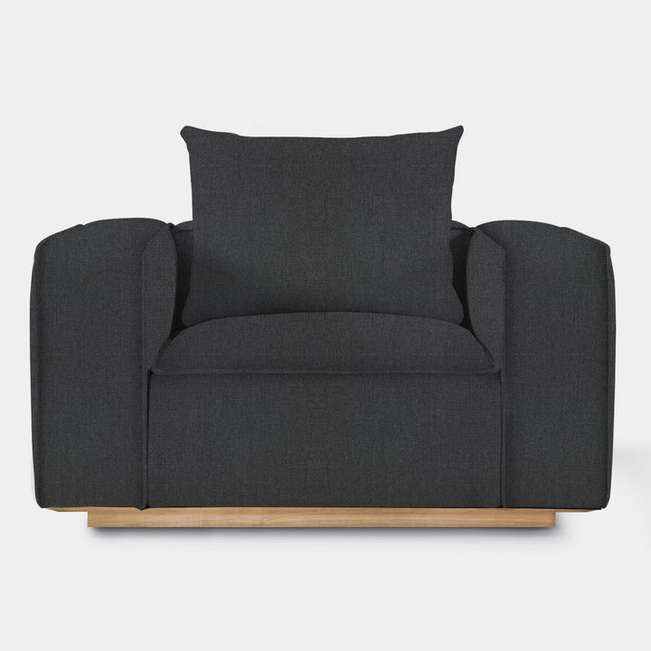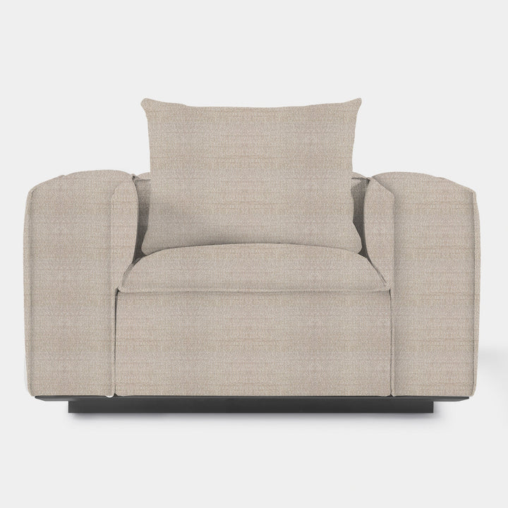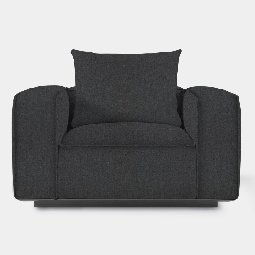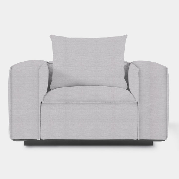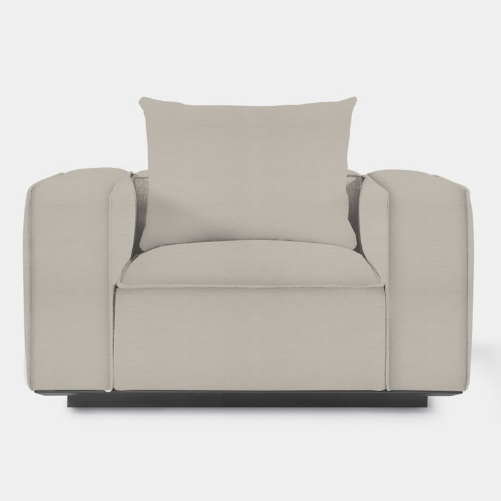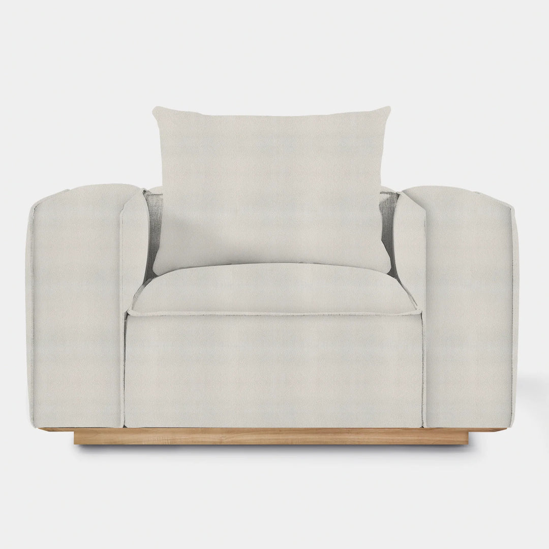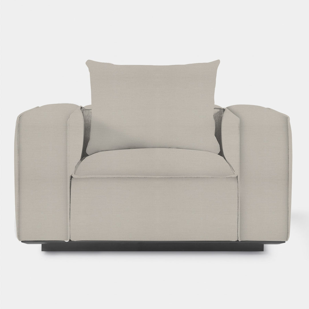 Building on our years of experience in outdoor design, the popular fully upholstered Santorini collection offers versatility in modular seating. Our smaller sofa, the Santorini collection is pure comfort — sink into an extra generous tight seat cushion with an all-weather suspension system and accent pillows, all floating on a plinth base in a choice of aluminum or teak. This easygoing modular component can be configured to fit an existing smaller space — and is always adaptable to the next space.