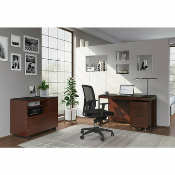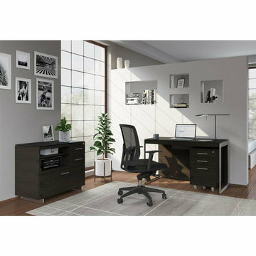 The Sequel 20 Compact Desk 6103 is a space-efficient and stylish solution for office organization and productivity. This compact desk is designed for modern professionals and creatives with limited workspace, this compact desk offers a luxurious work surface, a built-in keyboard drawer, and an intelligent wire management system. Enhance your home office or work area with this elegant and functional desk, designed to inspire productivity and organization even in smaller spaces.