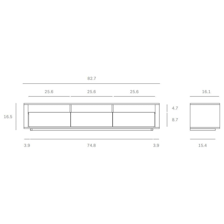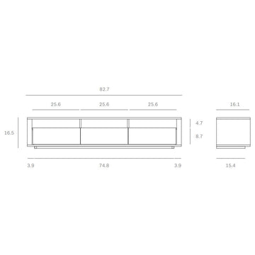 Overall Dimensions: 82.7 in W x 16.1 in D x 16.5 in H