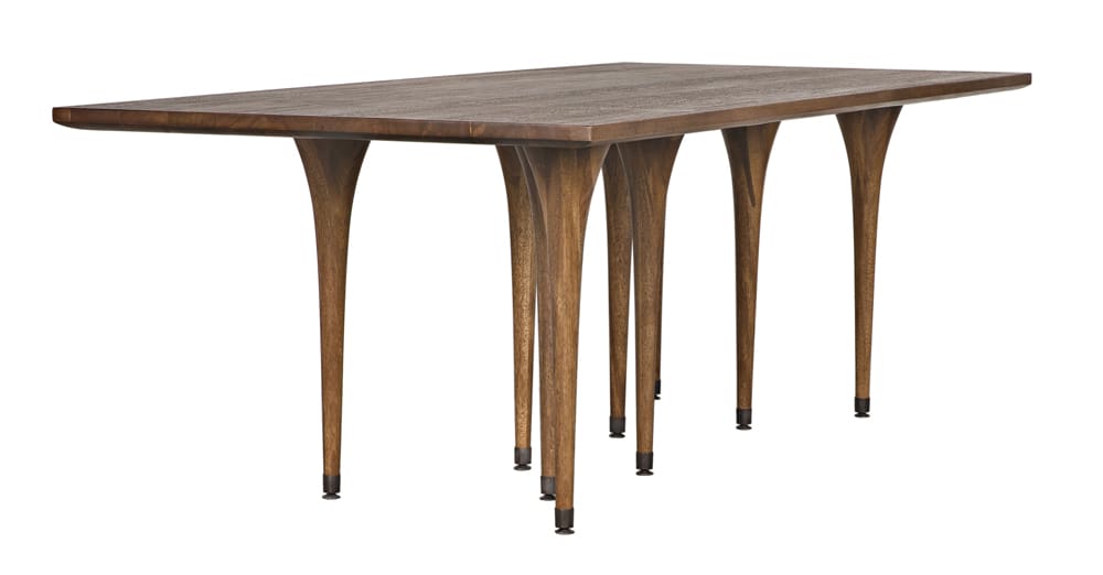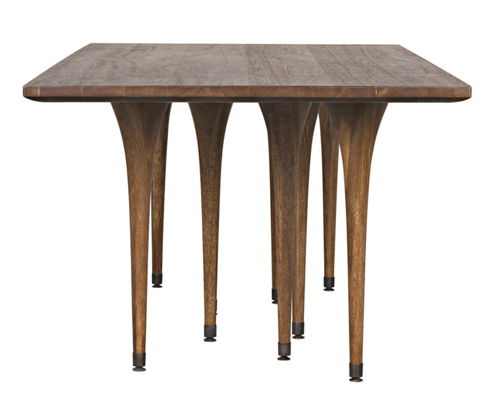 The Shifter Table by Noir is a bold, contemporary dining table that combines the rich warmth of dark walnut with the industrial touch of metal caps. At an impressive 105” in length, this table offers ample space for dining, making it an ideal choice for larger gatherings and family meals. The dark walnut finish enhances the natural beauty of the wood, while the metal accents add a unique contrast, giving the Shifter Table a versatile and stylish look that complements a variety of interiors.