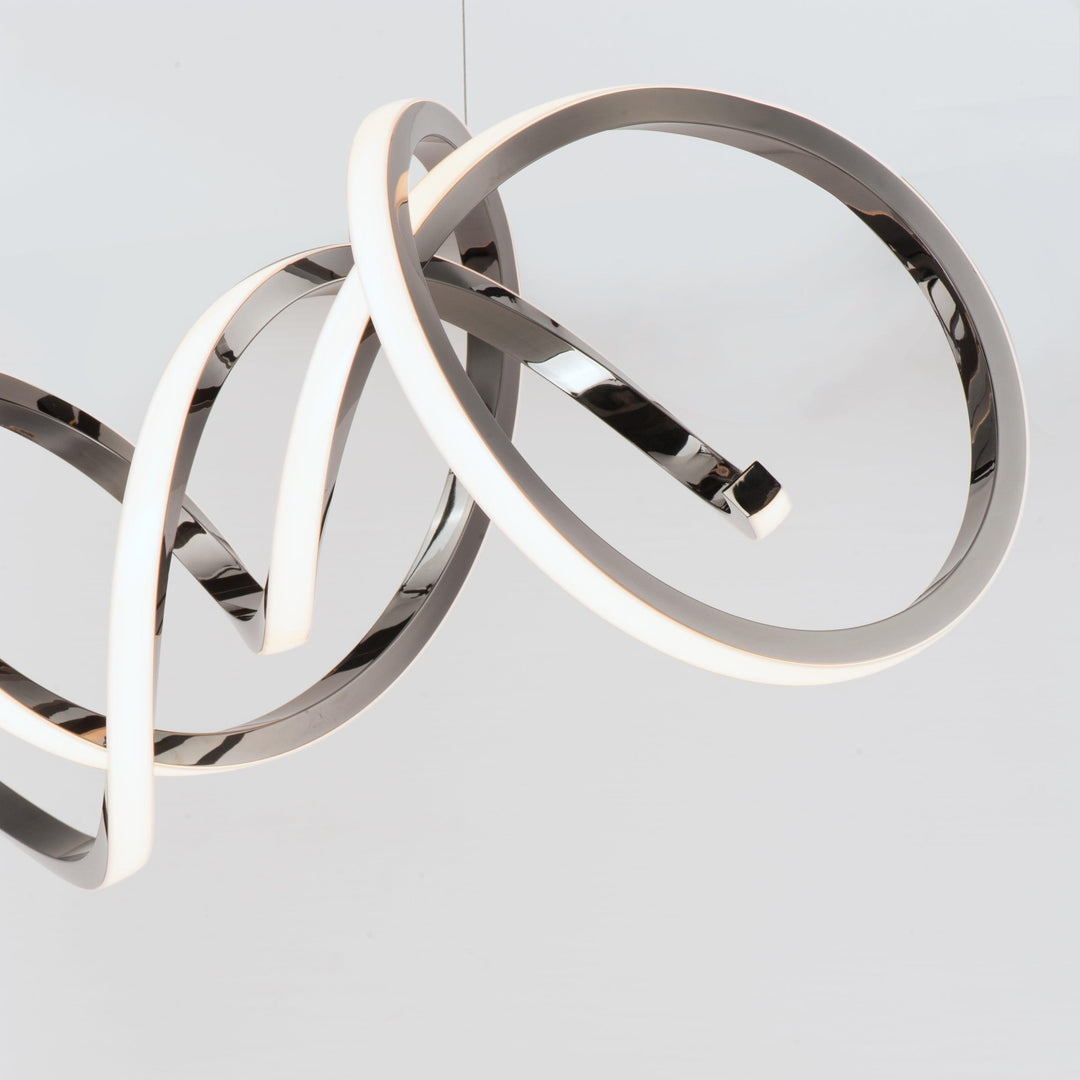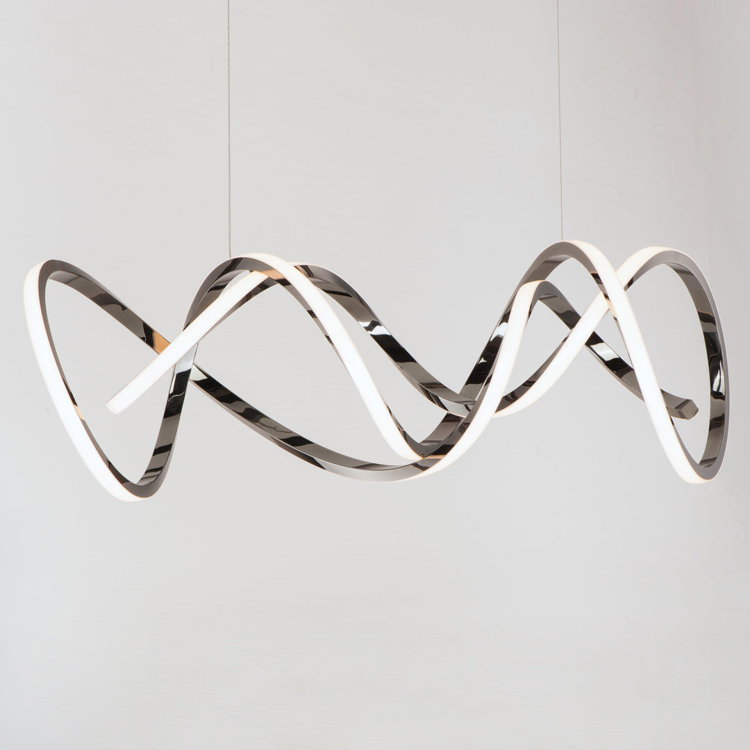 The Signature Pendants Organic lines sweep horizontally and terminate as if a signature was written in 3 dimensions. Finished in a rich Brushed Champagne, this collection is as much a sculpture as it is a functional light source.
